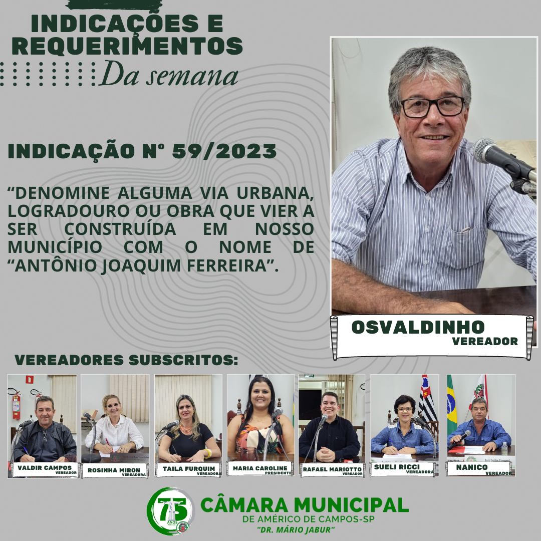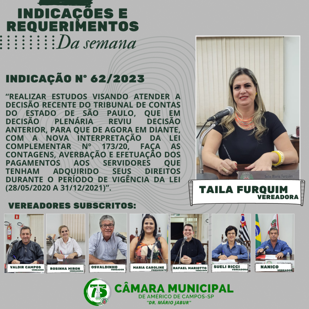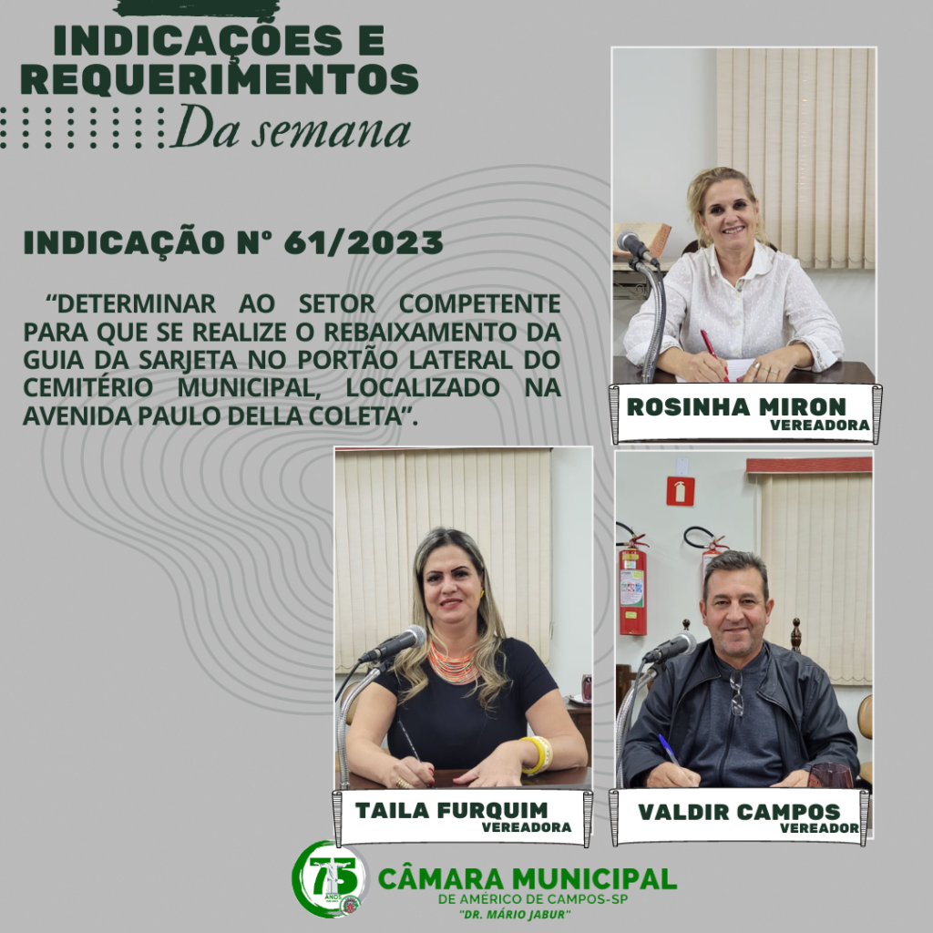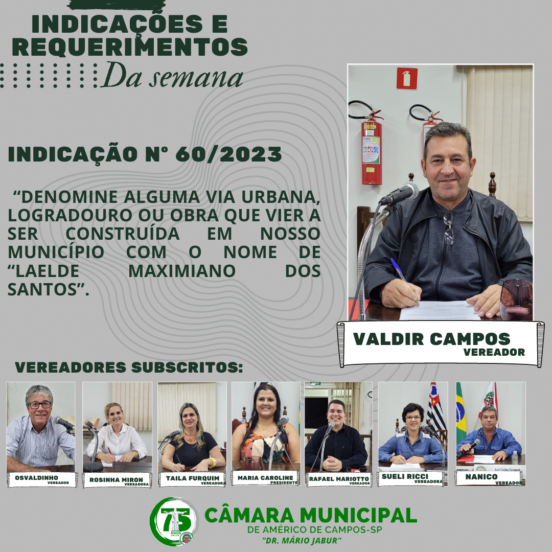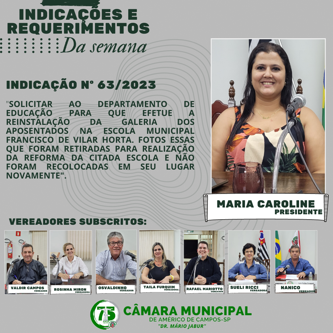 CONFIRA AS INDICAÇÕES E REQUERIMENTOS DA SEMANA