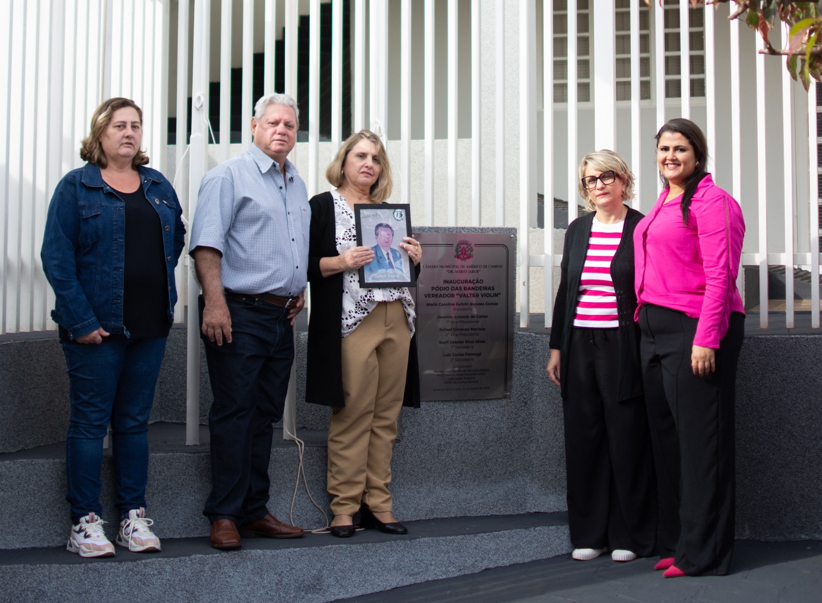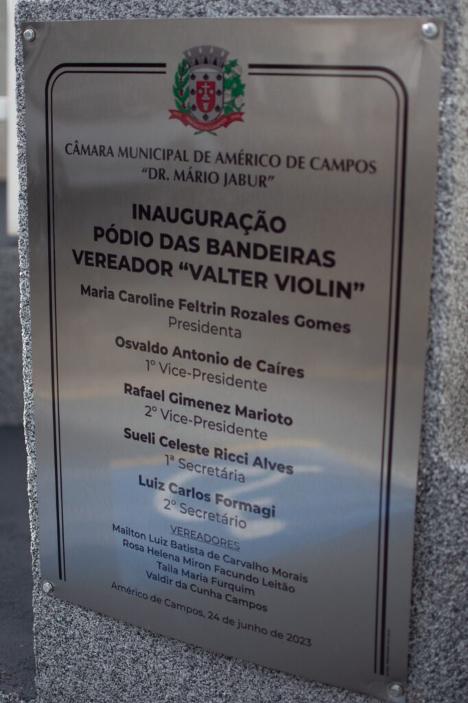 Foi inaugurado no dia 24 de junho, o pódio das bandeiras, que leva o nome de Vereador “Valter Violin”. O senhor Valter (in memorian), foi vereador e presidente por dois mandatos na Câmara Municipal de Américo de Campos, na 8ª legislatura 1979 e 1980 e na 9ª legislatura 1987 e 1988. Essa homenagem eterniza o vínculo que este grande homem teve em sua vida com essa Casa de Leis.