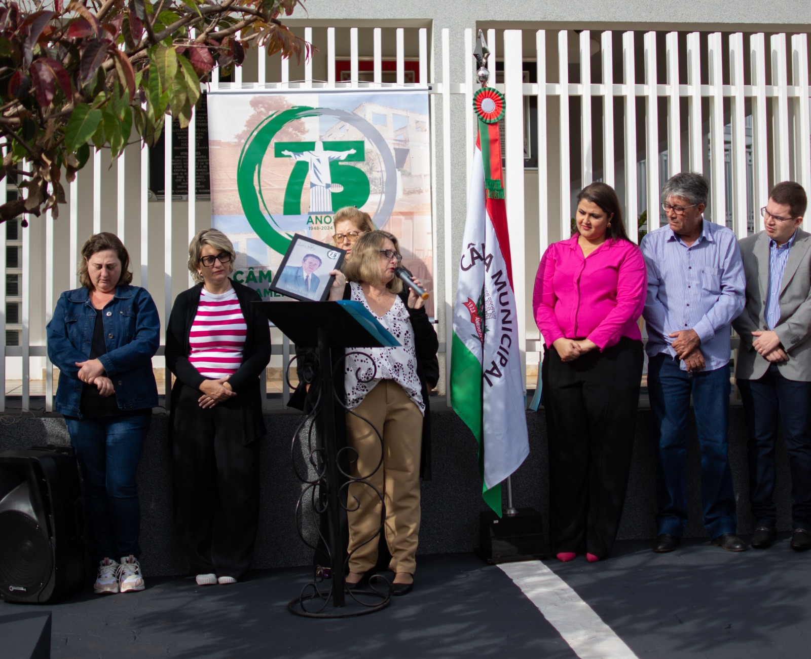 A nova logomarca traz as cores principais do município em dois arcos, que representa a aliança entre os vereadores com nossa população e município, em seu centro é estampado 75 anos e o cristo redentor que é a nossa proteção e o cartão postal de nossa cidade.