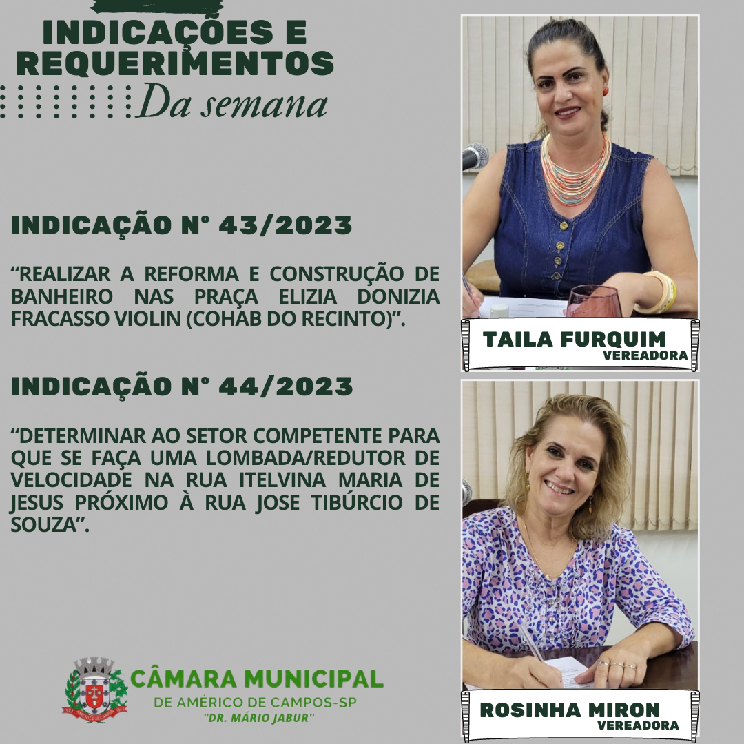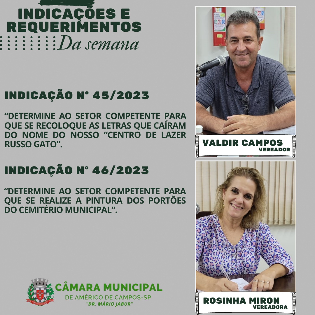 LEGISLATIVO EM AÇÃO ✍✔ Confira as Indicações e requerimentos apresentados pelos vereadores na sessão da Câmara Municipal de Américo de Campos desta terça-feira (06/06). Todas as indicações, serão entregues para o chefe do Poder Executivo. #Trabalholegislativo #sessão #dedicacao