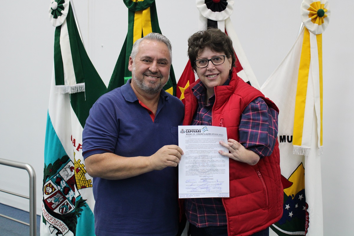 A vereadora Sele Rosada (União Brasil) entregou uma Moção de Congratulações ao senhor Alcides Burckarte Júnior, atual presidente da Associação de Pais e Amigos dos Excepcionais (Apae) de Capivari, pelos 44 anos de fundação da entidade. A cerimônia ocorreu na noite segunda-feira, 29, durante a 17ª sessão ordinária da Câmara Municipal.