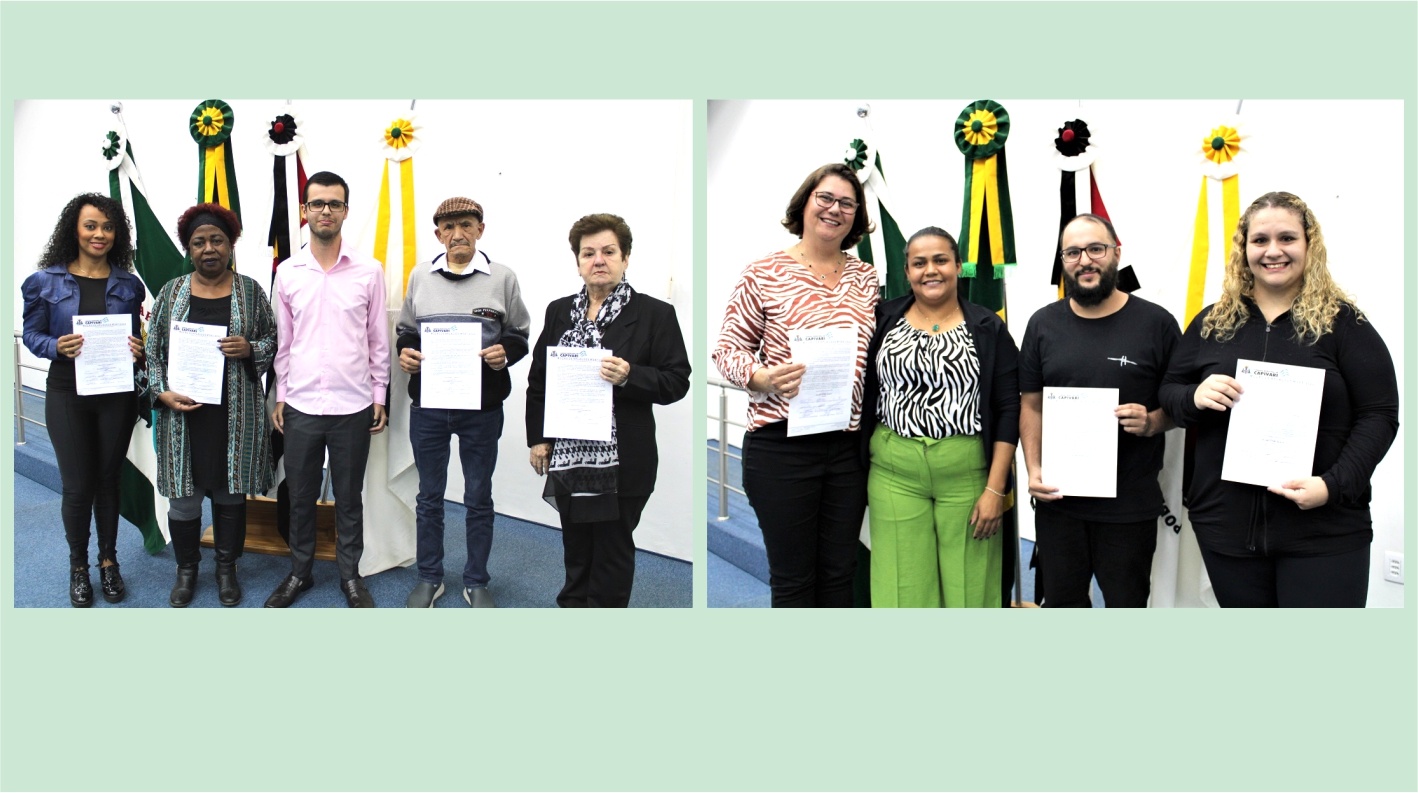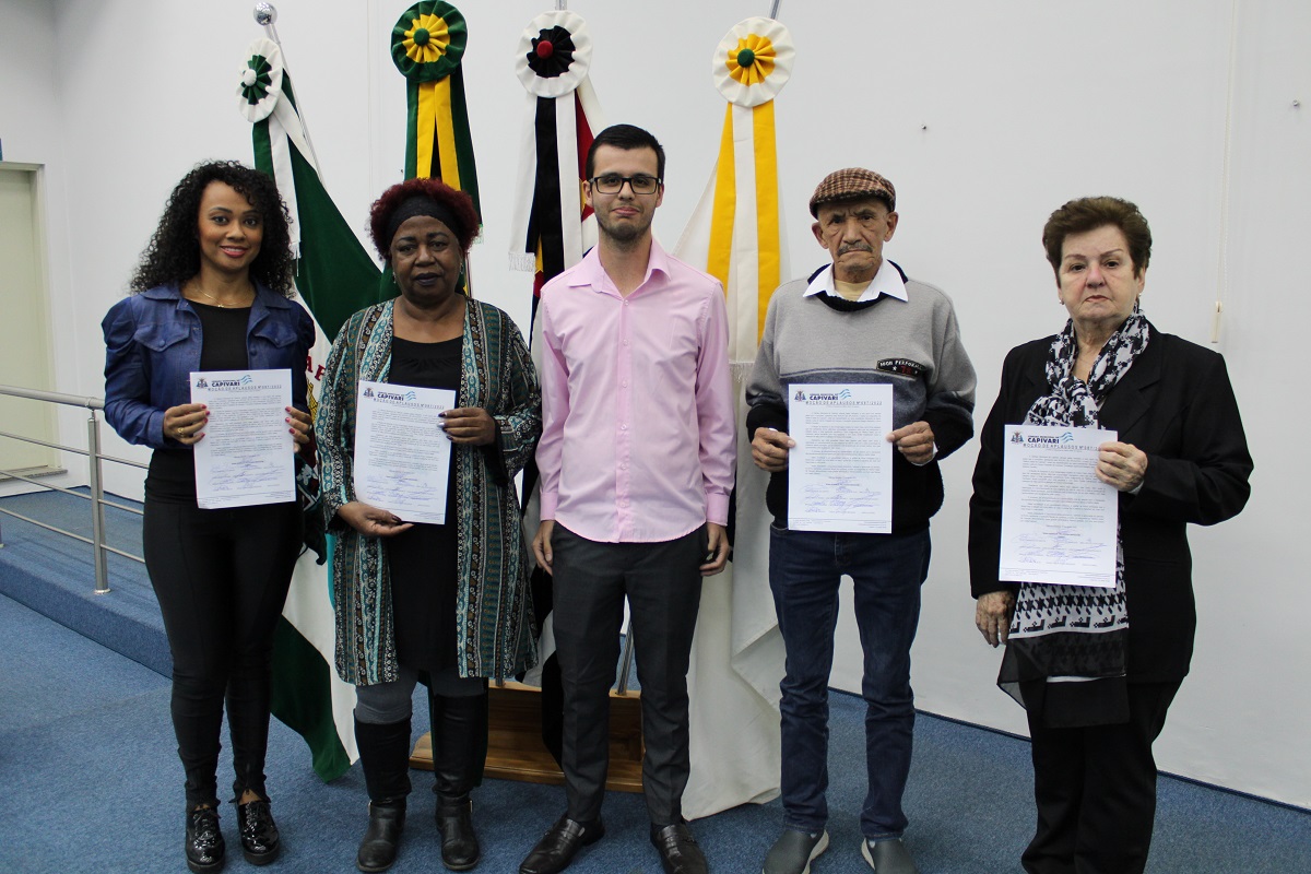 Representando os demais, estiveram presentes na Câmara Municipal para receber a homenagem Benedita de Jesus Galvão, presidente do grupo Reviver, do bairro Castelani, Leda do Carmo Frassetto de Campos, presidente do grupo Amizade, do centro, e Olívio Martins Carvalho, presidente do grupo Flor da Idade, do bairro Morada do Sol. A coordenadora da Terceira Idade, Juliana dos Santos, também recebeu a Moção.