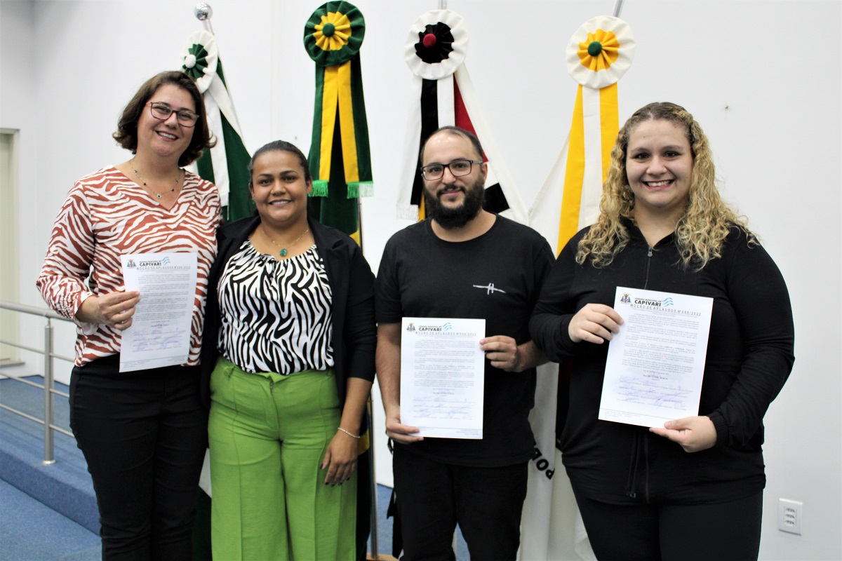 A outra Moção de Aplausos entregue na noite de segunda-feira, por iniciativa da vereadora Paloma Tatiane da Silva (PP), foi destinada aos cuidadores, professores acompanhantes e professores de atendimento educacional especializado (AEE), pela dedicação aos alunos com deficiência da Rede Municipal de Ensino.