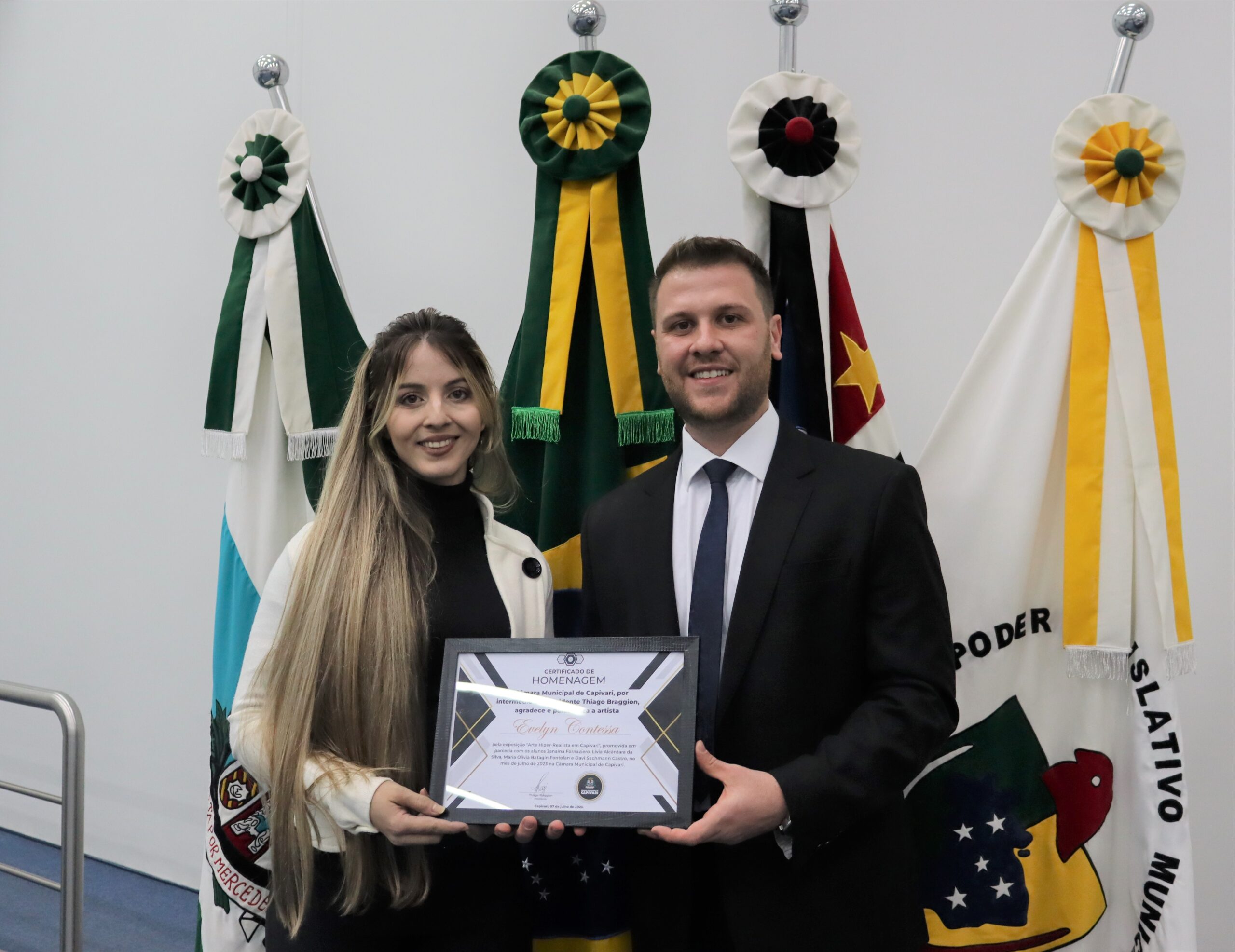 A abertura da exposição ocorreu na última sexta-feira, 07, durante a Sessão Solene. Evelyn recebeu uma homenagem das mãos do presidente Thiago Braggion (UNIÃO). “Estamos muito felizes em promover essa exposição, o trabalho da Evelyn é extraordinário, os desenhos parecem fotografias de tão perfeitos que são, ela e os alunos estão de parabéns”, comenta o parlamentar.
