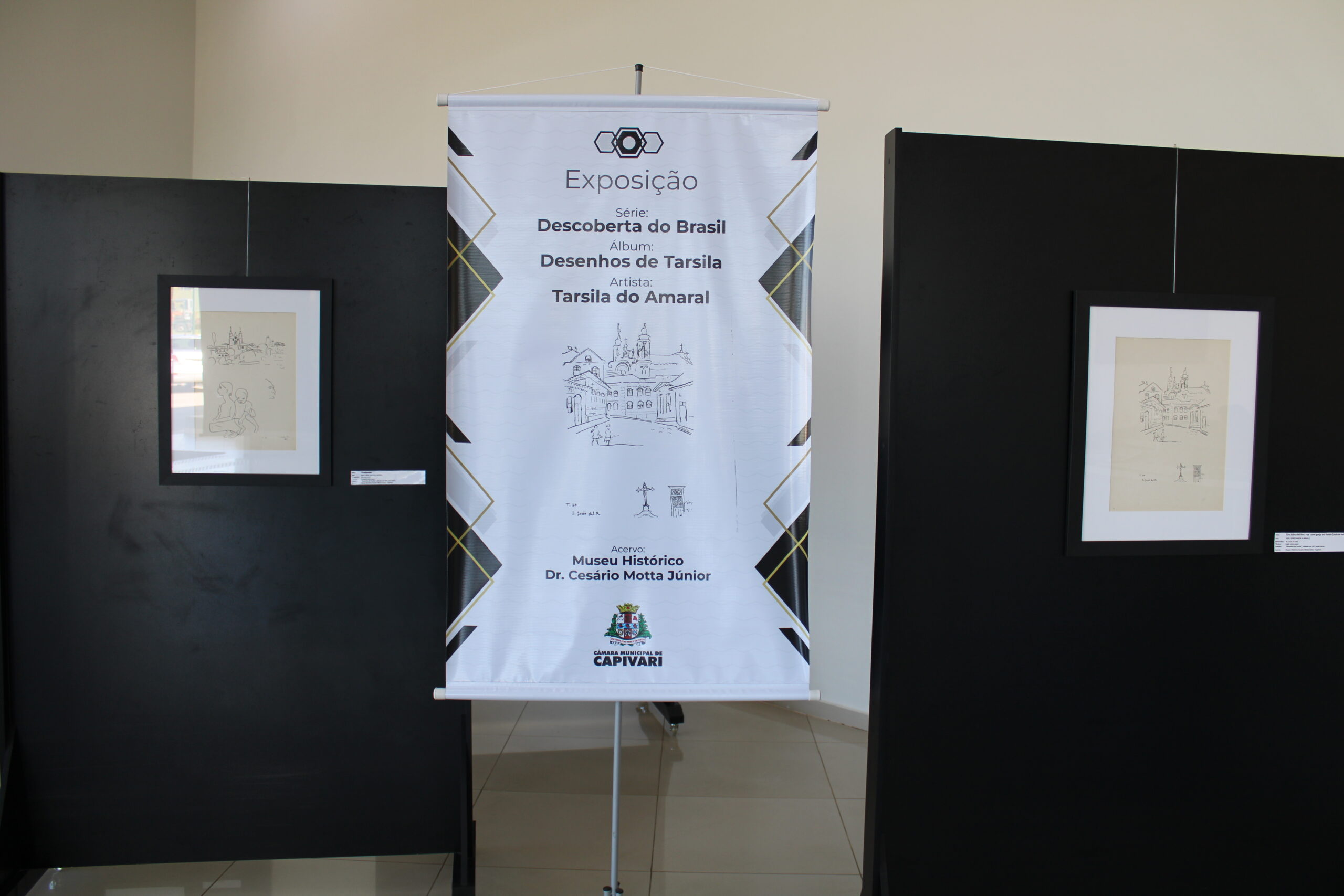 A outra exposição é de quadros de Tarsila do Amaral da série “Descoberta do Brasil”, que fazem parte do álbum “Desenhos de Tarsila”. As obras são do acervo do Museu Municipal e foram emprestadas à Câmara Municipal pela Secretaria Municipal de Cultura e Turismo.