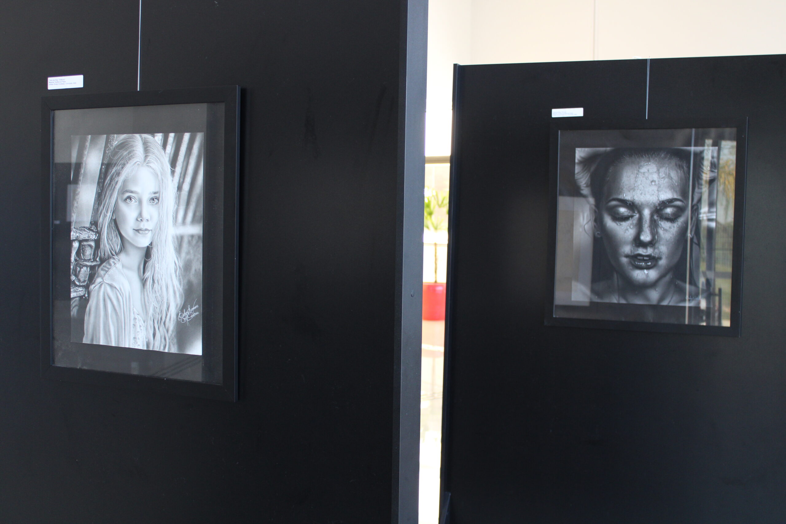 Além desses, também estão expostos outros desenhos hiper-realistas feitos por Evelyn, que retratam rostos humanos com diferentes feições e diversos detalhes. As artes são feitas com grafite, carvão e pastel seco.