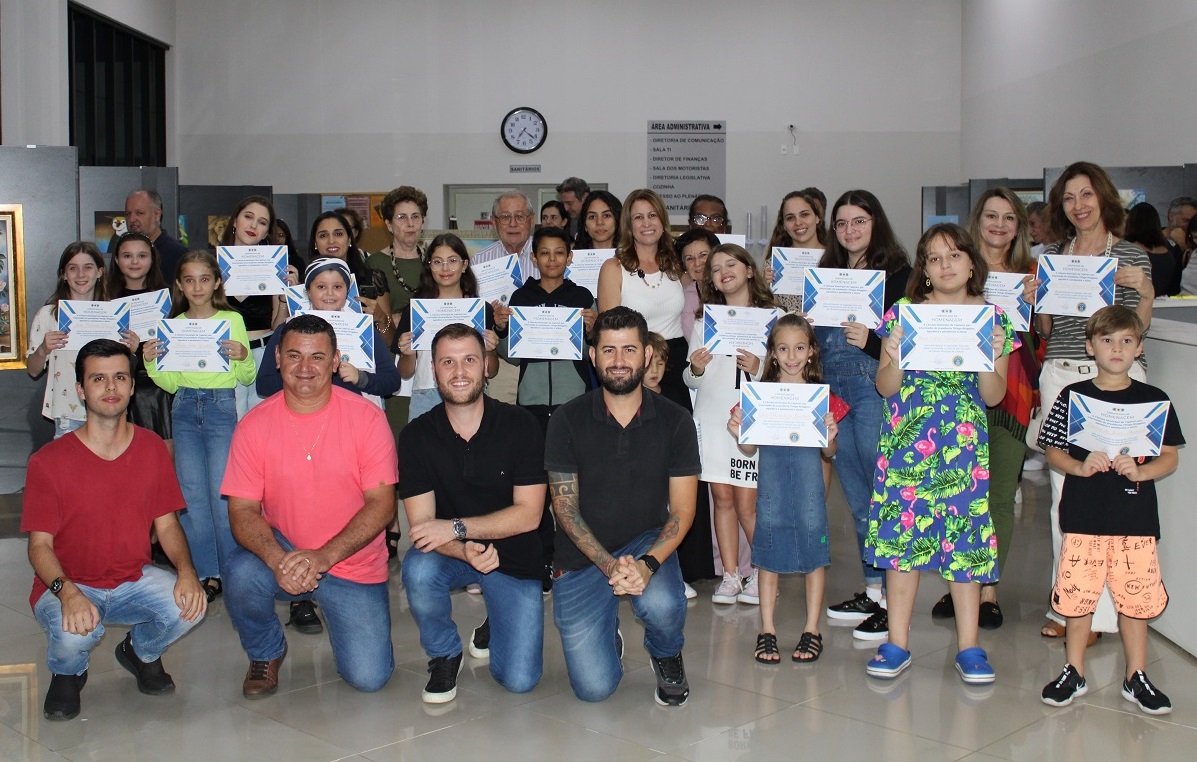 A cerimônia foi conduzida pelo presidente da Câmara, Thiago Braggion (União Brasil), pelos vereadores Du Tambú (Republicanos), Ruan Henrique Pellegrini (Republicanos) e Sandro Modas (PSDB) e pela artista e professora Priscila Maria Barata, curadora da exposição.