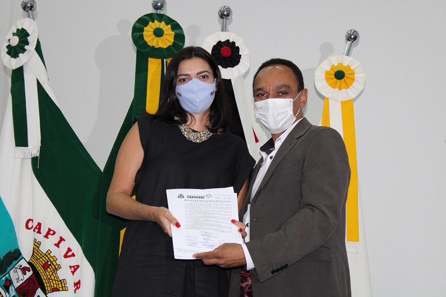 Logo após, o vereador Nelson Soares (PL) fez a entrega de Moção de Aplausos, também aprovada por unanimidade, à dra. Taís de Fátima Boareto, presidente da subseção de Capivari da OAB (Ordem dos Advogados do Brasil). Ela é a segunda mulher na história a assumir esse cargo no município – a primeira foi a dra. Maria Amélia D’Arcadia.