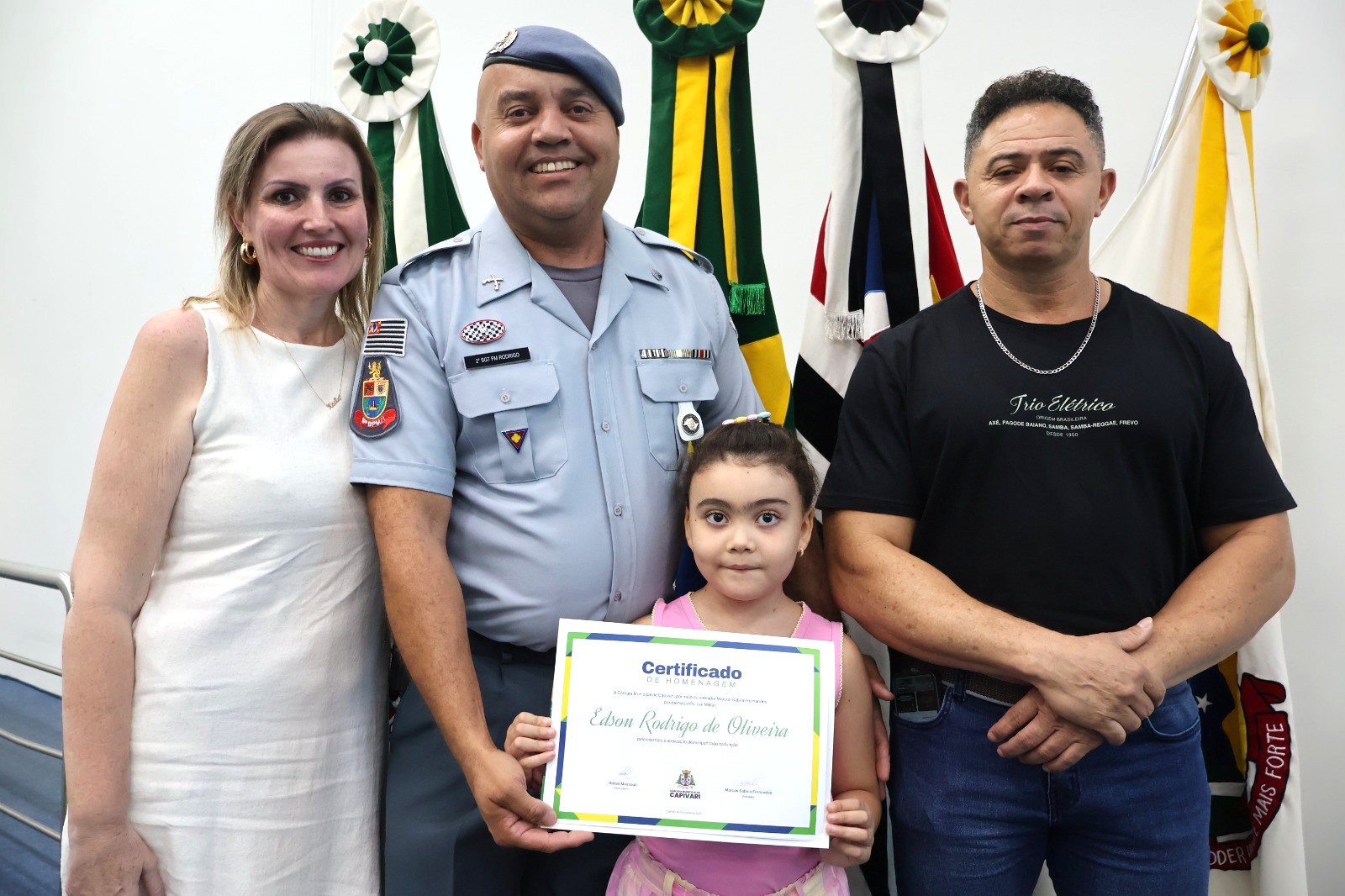 A Câmara Municipal de Capivari realizou, nesta segunda-feira (8), a entrega da Moção de Aplausos nº 122/2025, em reconhecimento ao Policial Militar Edson Rodrigo de Oliveira. A iniciativa, proposta pelo vereador Marcos Sabino (PSD), destaca o trabalho dedicado do profissional no atendimento à população e no reforço das ações de segurança no município.