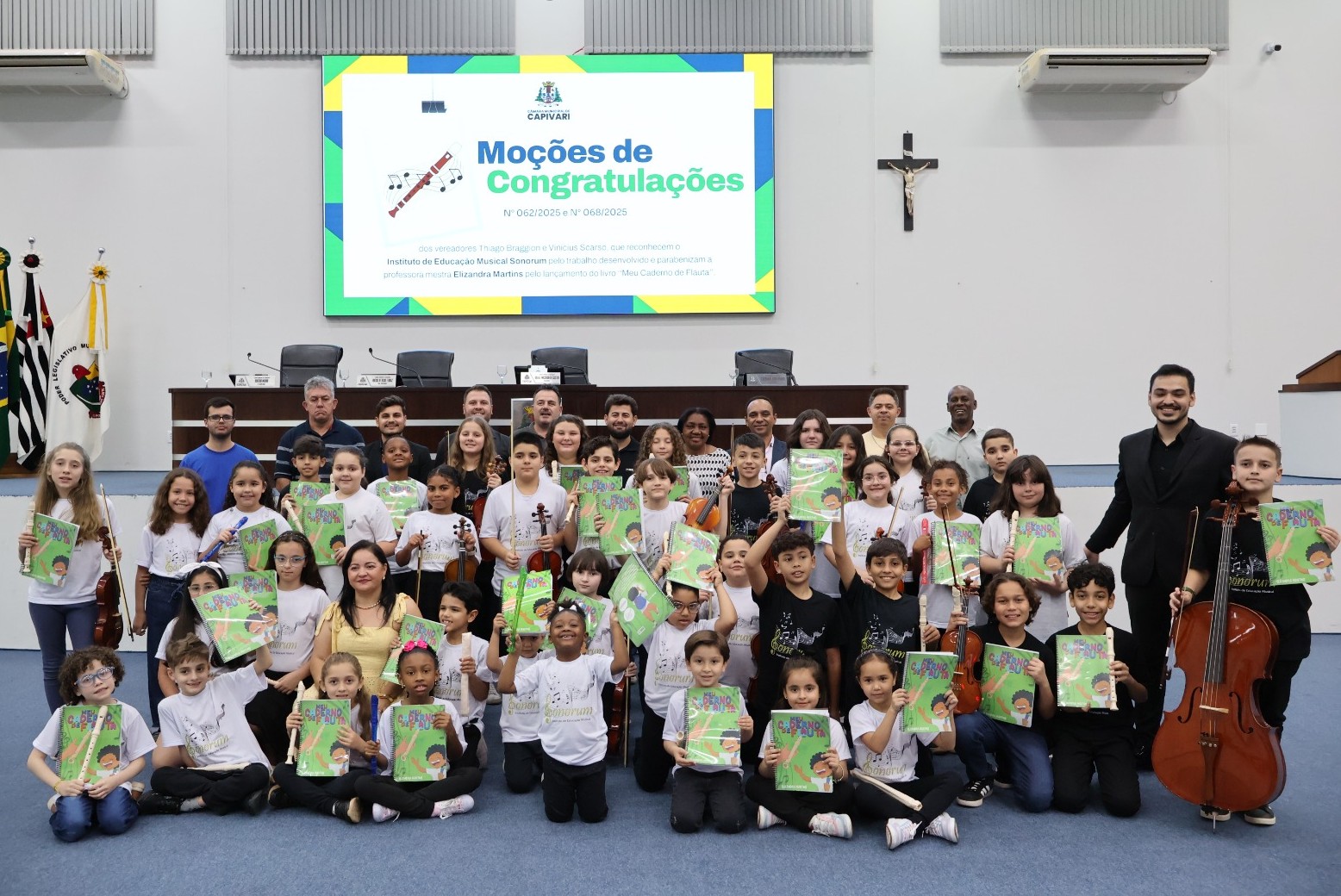 A primeira moção, de autoria do vereador Thiago Junior Anesio Braggion, é destinada ao Instituto de Educação Musical Sonorum, em reconhecimento à implantação do Polo Capivari e ao trabalho desenvolvido. “Elizandra é um exemplo de comprometimento com a educação e com a valorização da música em Capivari. Sua atuação inspira nossos alunos e engrandece a cultura da cidade. Esta moção é um reconhecimento justo e necessário por tudo o que ela representa para nossa comunidade”, afirma Thiago.