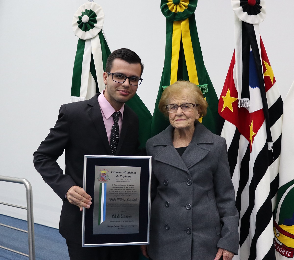 O vereador Ruan Henrique Pellegrini (Republicanos) concedeu o Título de Cidadã Exemplar à senhora Vitória Albieiro Bressiani, empresária que, junto com o marido falecido Armando Bressiani, fundou o Supermercado Bresciani. Atualmente, a empresa possui duas lojas em Capivari. Vitória se destaca por suas ações sociais, como a venda de papelão excedente do supermercado para comprar remédios e mantimentos para os doentes, além de seu envolvimento com entidades filantrópicas. Ela também é participativa na Paróquia de Nossa Senhora de Fátima.