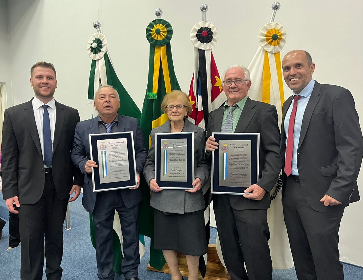 “Foi uma cerimônia emocionante. Parabenizo os vereadores Ruan, Mineiro e Sandro pelas excelentes escolhas dos homenageados, a senhora Vitória e os senhores Benedito e Joaquim, porque realmente são pessoas de destaque, que fizeram e ainda fazem muito pela cidade”, declara o presidente Braggion.
