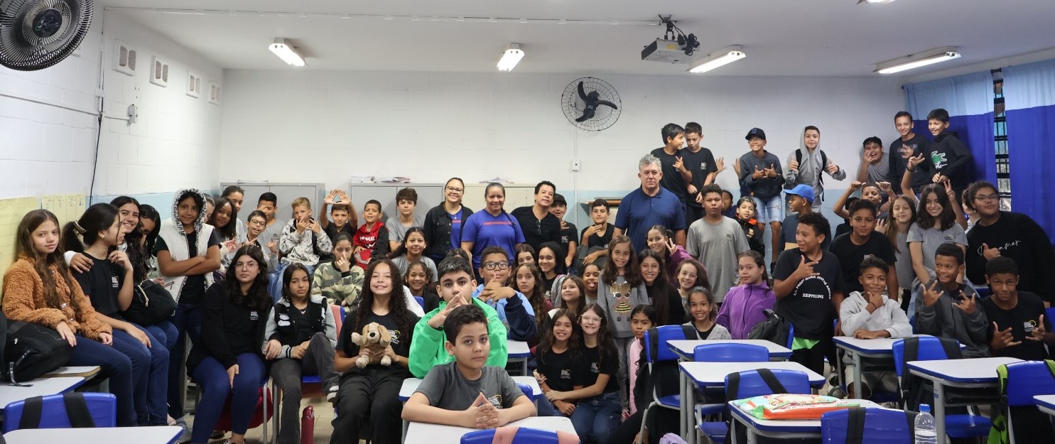 O vereador Clóvis Zani (PSD) visitou, na manhã desta terça-feira (8), a Escola Estadual Professora Maria José de Aguiar Zeppelini, em Rio das Pedras, para conversar com os alunos dos 6º e 7º anos sobre a importância da causa animal.