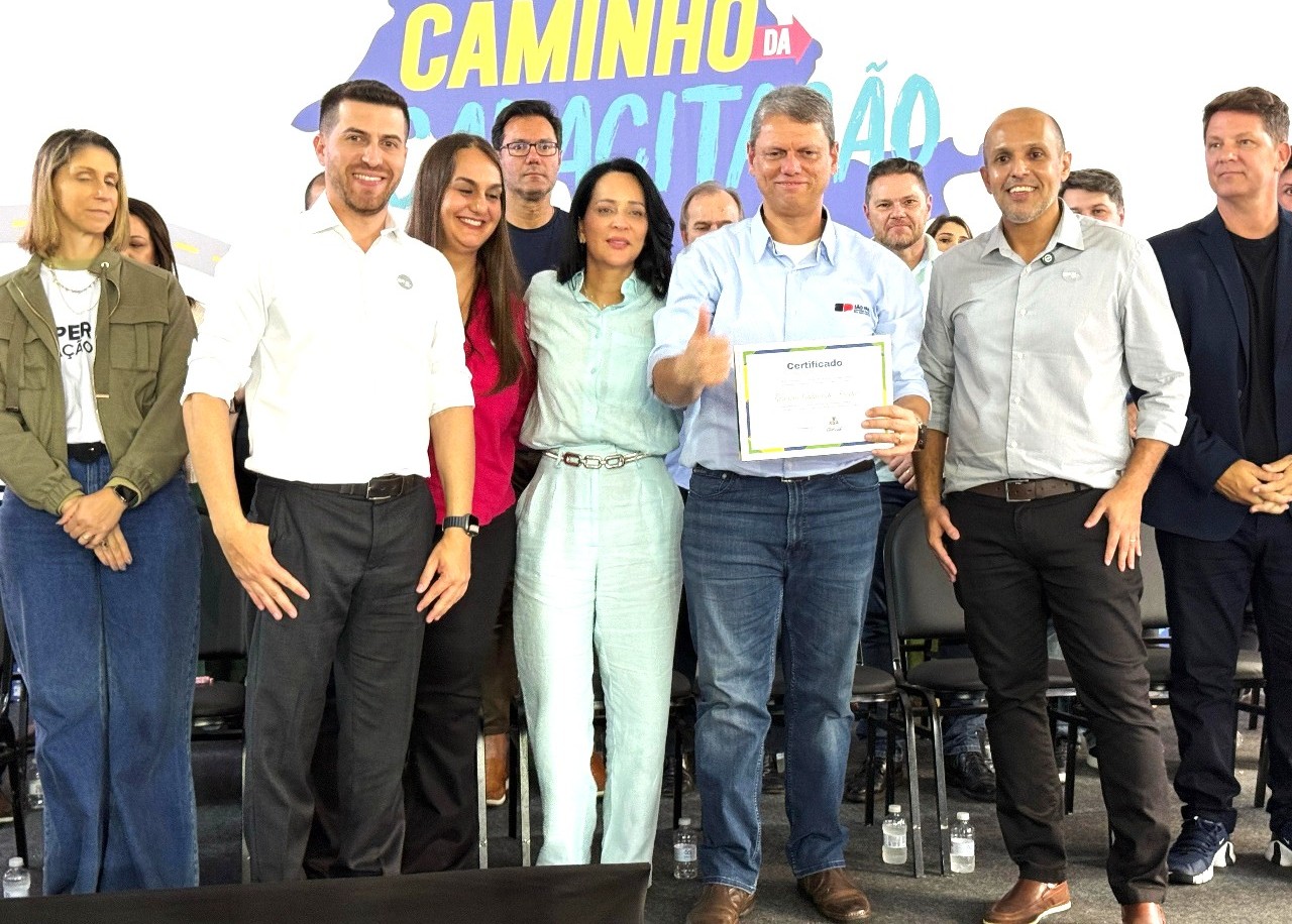 A primeira-dama Cristiane Freitas, idealizadora do SuperAçãoSP, programa do qual o Caminho da Capacitação faz parte, também foi homenageada pelo empenho em levar qualificação e oportunidades para todas as regiões do estado.