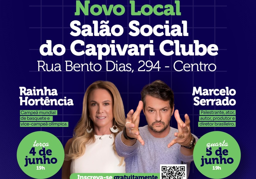 A Rainha Hortência, dia 4 de junho, e o Marcelo Serrado, dia 5, vão abordar na aula inaugural da Escola do Legislativo da Câmara Municipal de Capivari como as pessoas podem superar barreiras, enfrentar desafios e se tornar referências naquilo que elas se propõem a fazer no dia a dia e em suas profissões. “Os dois, apesar do inegável dom natural, do talento nato, deram o melhor deles em treinamentos, ensaios, capacitações, estratégias”, afirmou o presidente da Câmara de Capivari, o vereador Thiago Braggion. “Transformaram pressão e medo em títulos e força”.