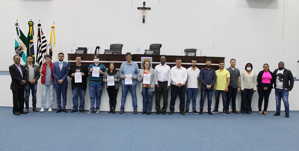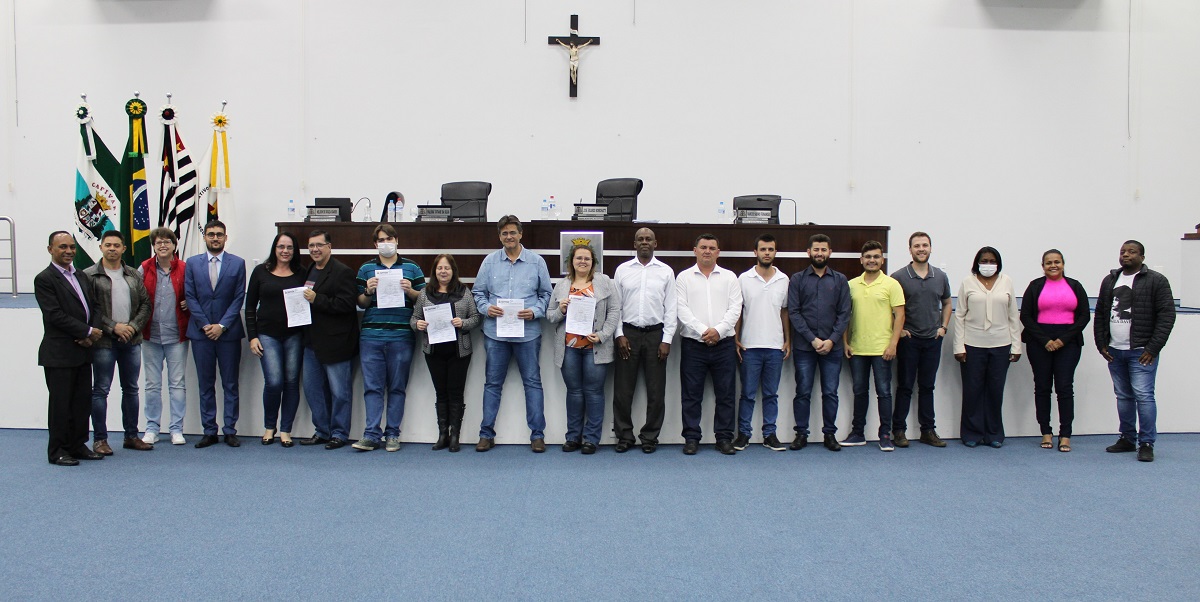 Francisco de Jesus Camilo, ex-diretor de Cultura, Valéria Pacheco, ex-secretária de Educação, e familiares do ex-prefeito José Lázaro Zico de Almeida Soares foram homenageados com uma Moção de Aplausos pela Cápsula do Tempo desenvolvida em 2.000 e aberta recentemente, após 22 anos.