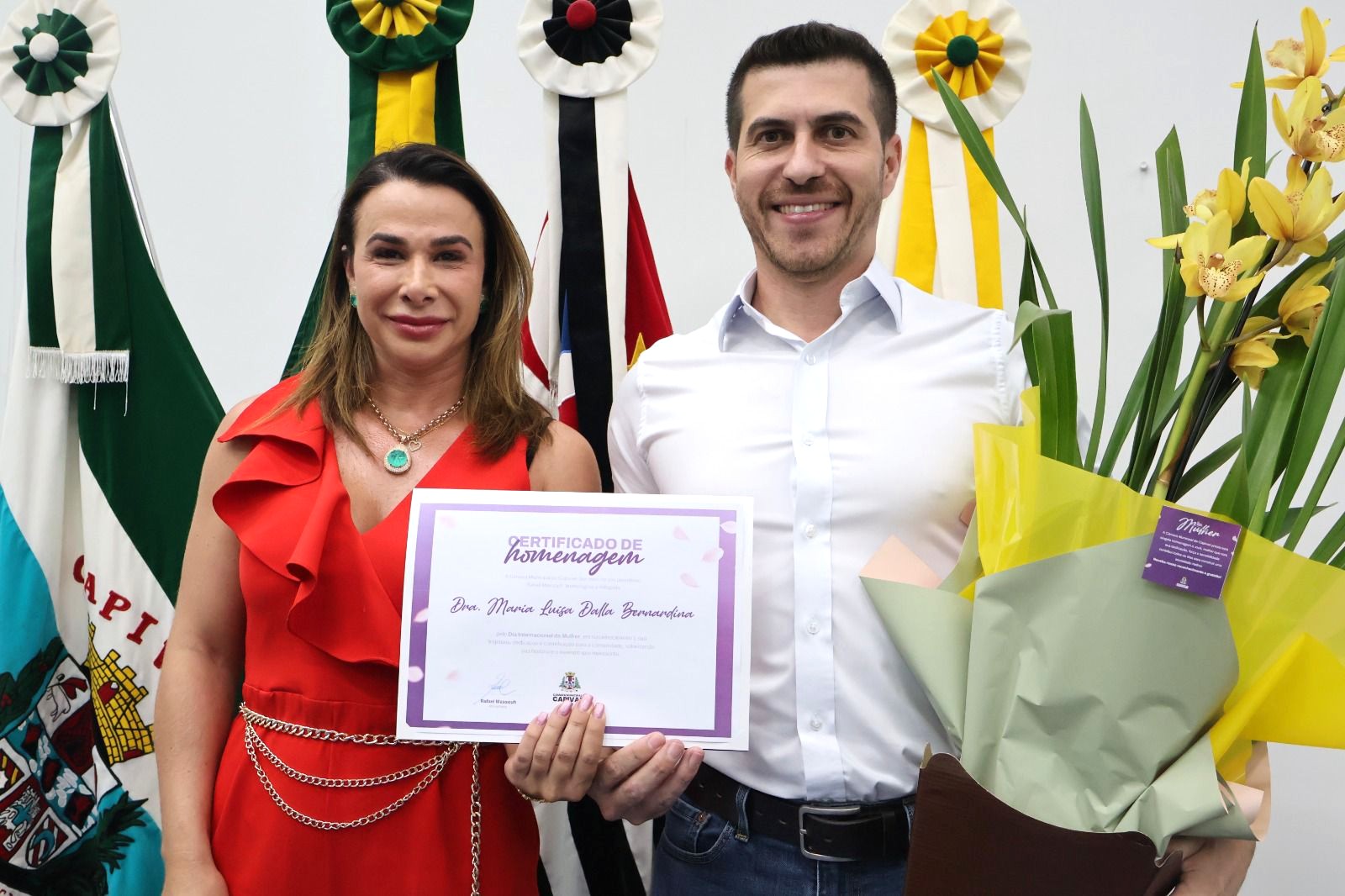 Ao final do encontro legislativo, ele também participou da cerimônia de reconhecimento às mulheres promovida pelo Legislativo municipal, ocasião em que voltou a prestar homenagem à delegada.