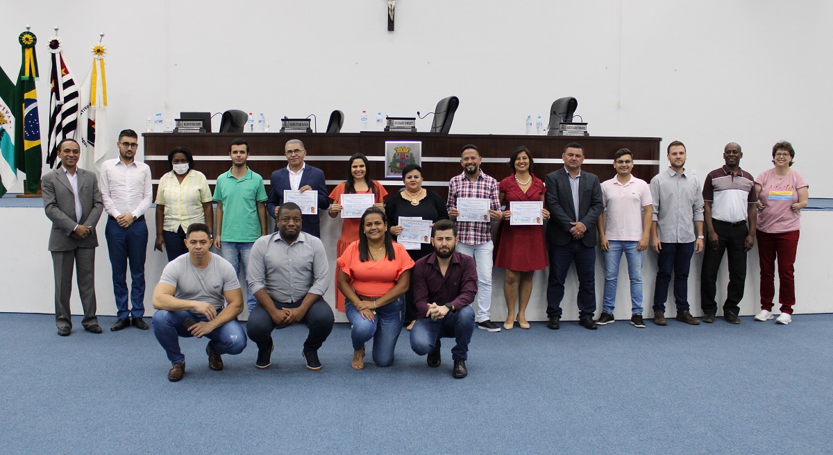 Os conselheiros tutelares Denis Fernando Ribeiro, Lucilene da Silva Lima Leme, Reinaldo da Silva Flausino e Telma Aparecida Duarte Bettin também estiveram presentes na cerimônia e receberam homenagens de Du Tambú.