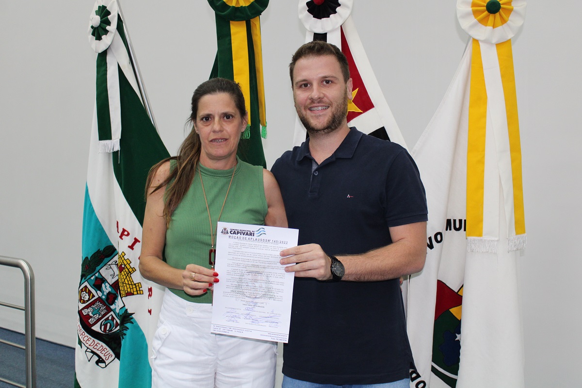 Ainda durante a última sessão ordinária do ano, o vereador Thiago Braggion (União Brasil) realizou a entrega de uma Moção de Aplausos ao Centro de Controle de Zoonoses (CCZ) pela realização de 1.200 castrações de cães e gatos em Capivari em pouco mais de um ano.