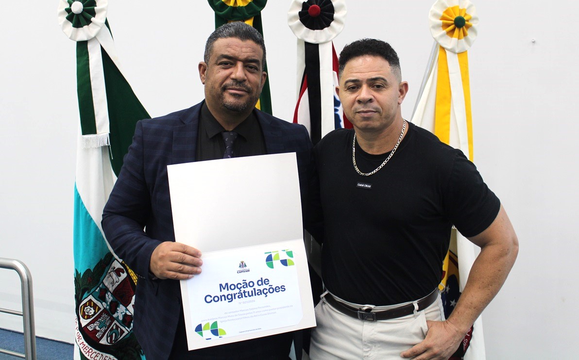 O vereador Marquinho Mineiro (Podemos) prestou homenagem ao pastor Antônio Marcos Mota de Souza na 7ª Sessão Ordinária da Câmara Municipal de Capivari, realizada na noite desta segunda-feira (18). A cerimônia de entrega de Moção de Congratulações reuniu parentes e amigos do religioso, que também preside a Igreja Pentecostal Filhos do Rei e Curas Divinas na cidade.