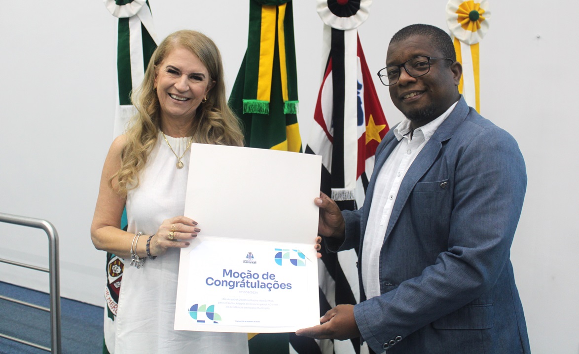 O vereador Denilton Rocha (MDB) apresentou Moção de Congratulações à Escola Alegria de Crescer (EAC) pelos seus 40 anos de dedicação à educação e ao desenvolvimento da comunidade. A homenagem foi prestada durante a 5ª Sessão Ordinária da Câmara Municipal de Capivari, realizada no último dia 4.