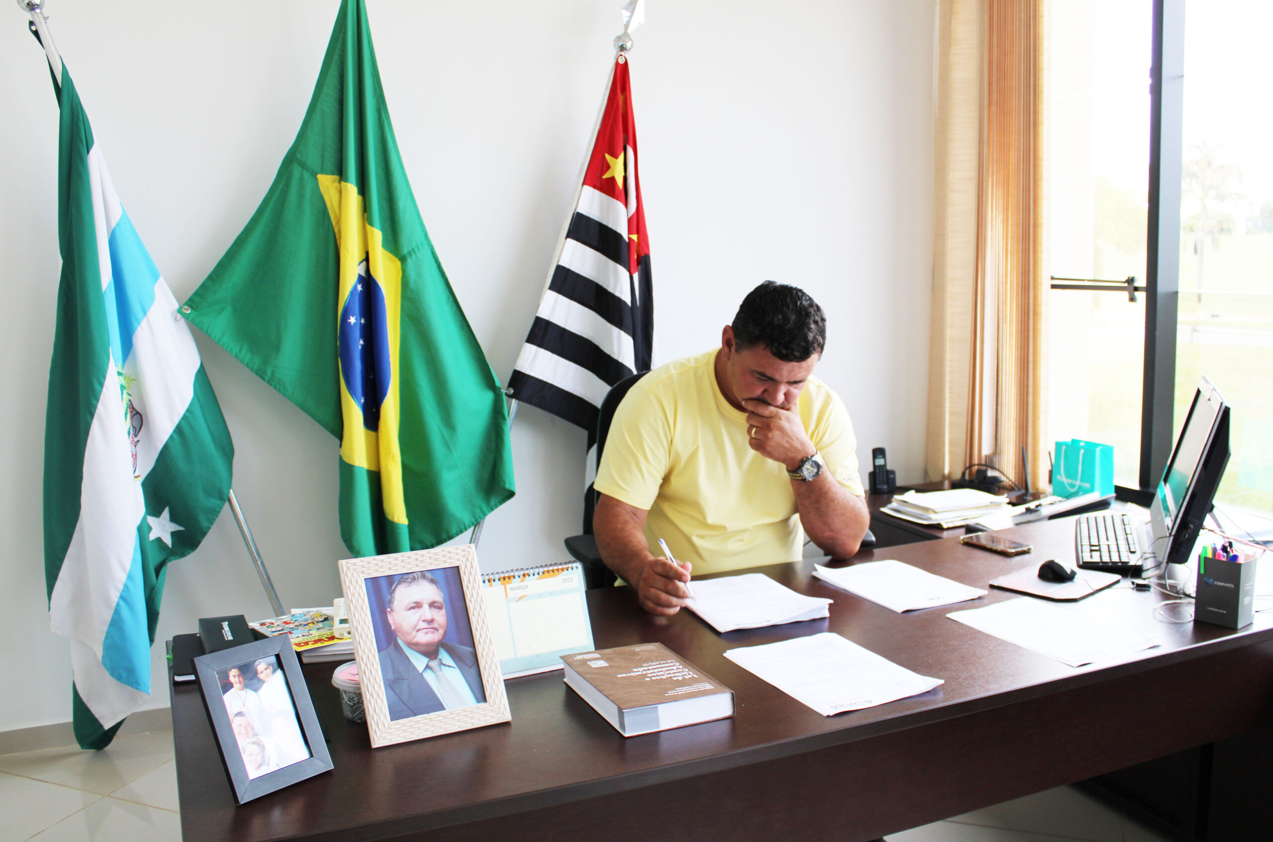 O presidente da Câmara Municipal de Capivari, Du Tambú (Republicanos), esteve em seu gabinete, nesta quinta-feira, 10, analisando os 22 projetos de lei protocolados pela Prefeitura.