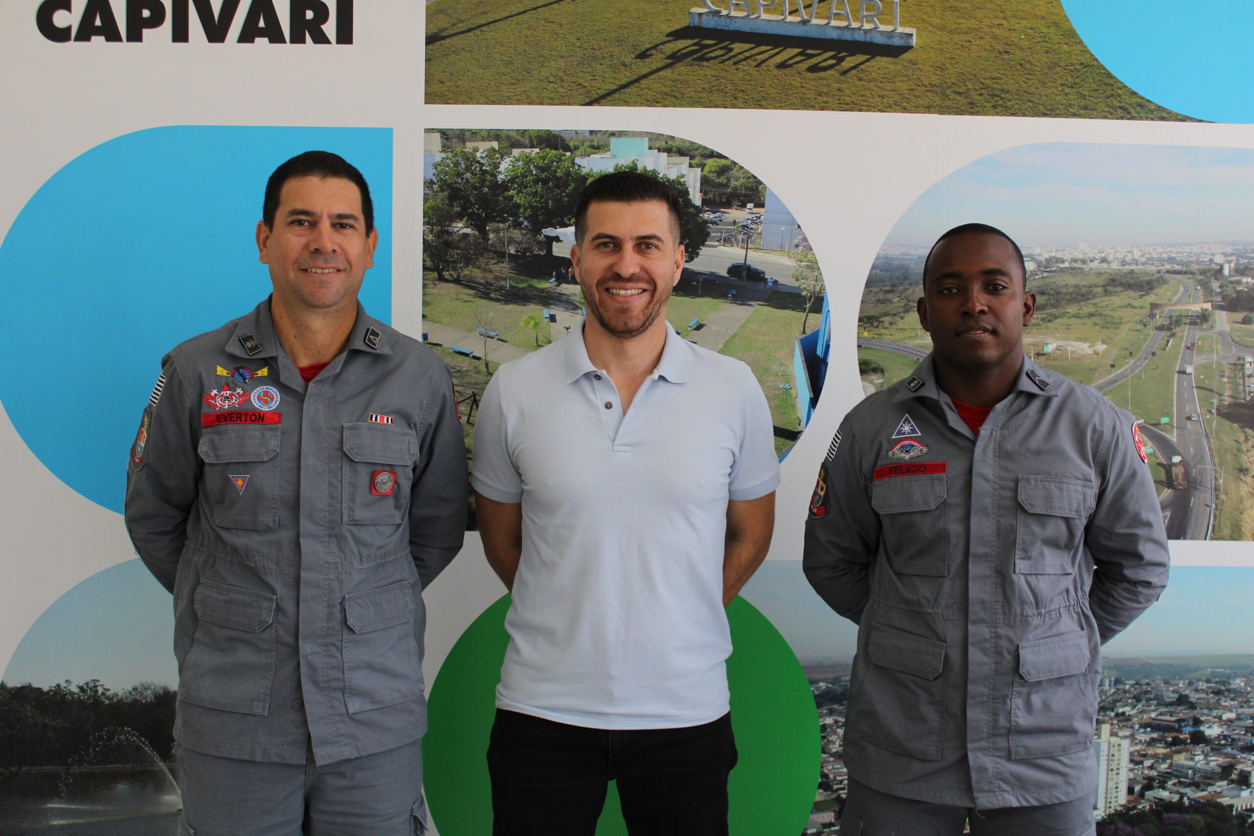 O presidente da Câmara Municipal de Capivari, Rafael Massouh (PL), recebeu em seu gabinete, na manhã do dia 14, o comandante da Estação de Bombeiros de Capivari, Subtenente Everton Luis Soares, e o Soldado Felício.