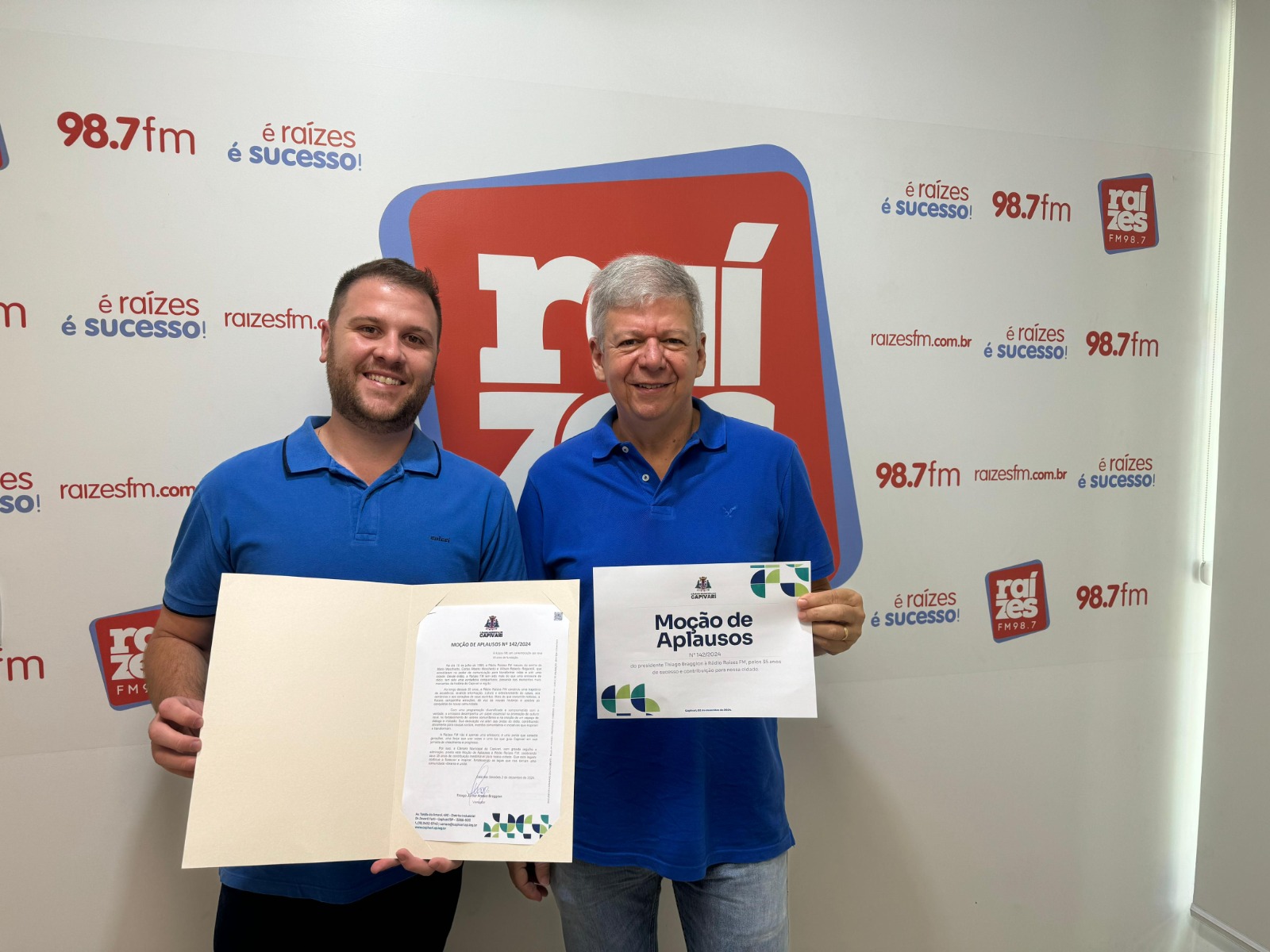 Na 40ª Sessão Ordinária da Câmara Municipal de Capivari, os vereadores aprovaram uma Moção de Aplausos apresentada pelo presidente Thiago Braggion em homenagem à Rádio Raízes FM pelos seus 35 anos de fundação, celebrados em 2024.