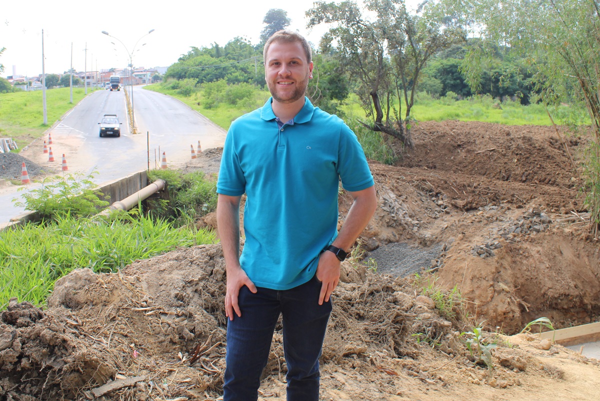 Presidente Thiago Braggion visita obra da nova ponte no bairro Castellani