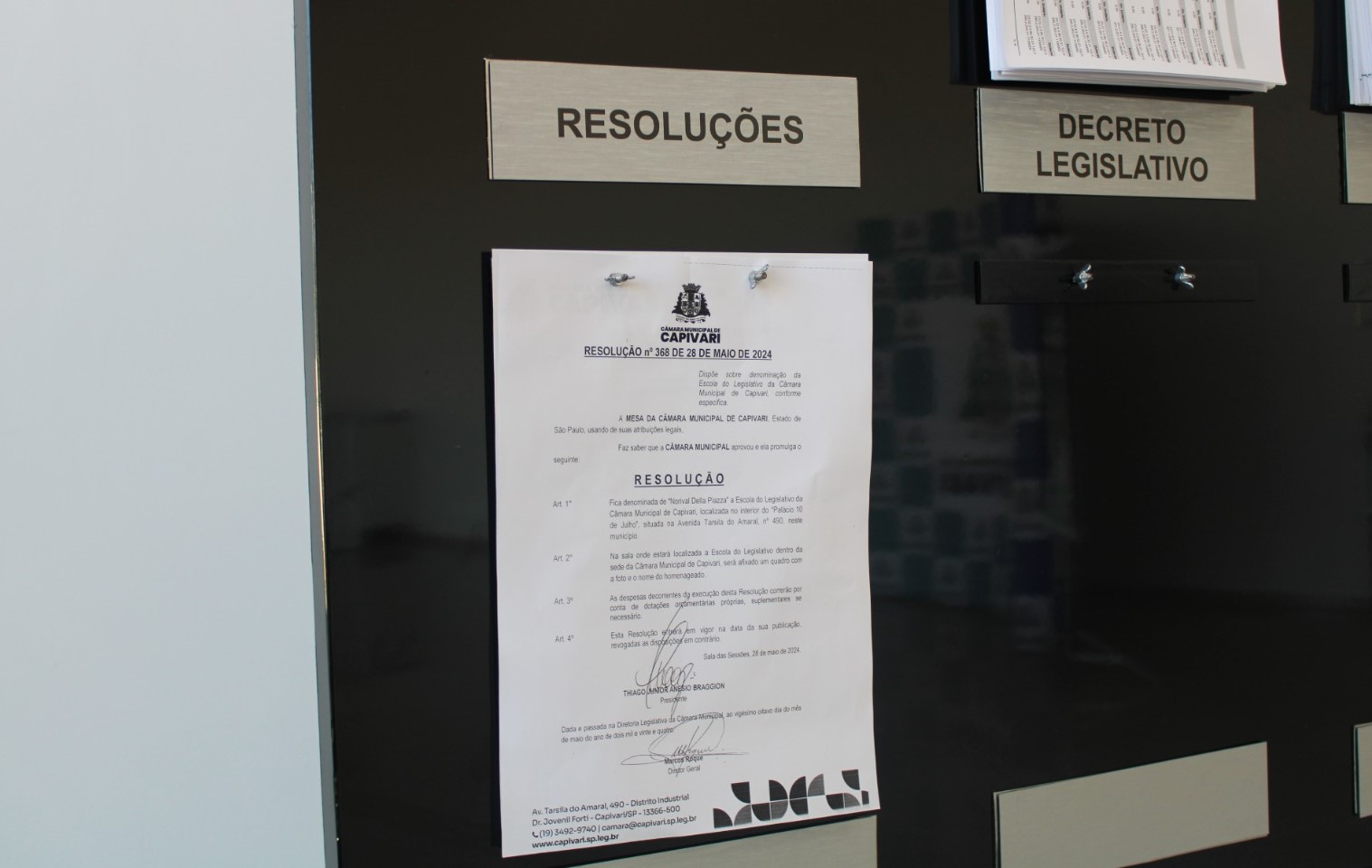 O Projeto de Resolução 003/2024 é de autoria da Mesa de Diretora da Casa de Leis e da vereadora Inês Luísa Félix da Costa. Com isso, a escola passa a se chamar oficialmente Escola do Legislativo da Câmara Municipal de Capivari “Vereador Norival Della Piazza”.