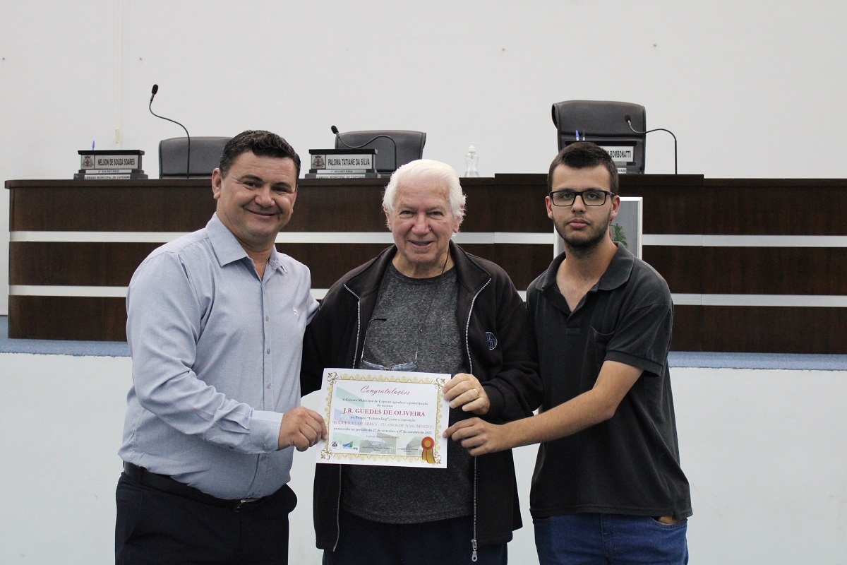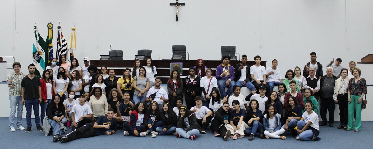 O presidente da Casa de Leis, Du Tambú (Republicanos), e os vereadores Ruan Henrique Pellegrini Braggion (Republicanos) – idealizador da exposição, Inês Luísa Félix da Costa (União Brasil), Paloma Tatiane da Silva (PP) e Sele Rosada (União Brasil) participaram do evento, além dos alunos da escola estadual Padre José Bonifácio Carreta e outras autoridades.