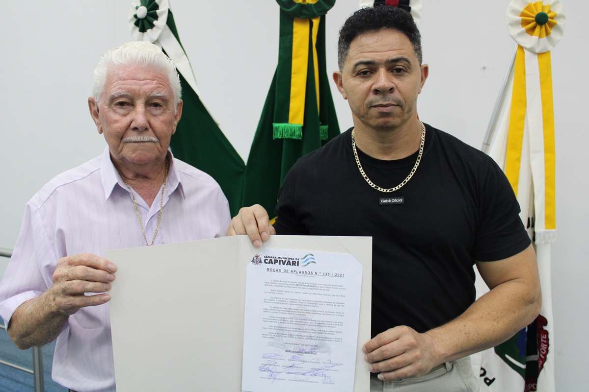 A moção de aplausos entregue nesta última segunda-feira, dia 13, foi de autoria do vereador Marquinho Mineiro (Podemos), que homenageou o Sr. Moacir Andrello por sua dedicação, cordialidade e profissionalismo em todos os seguimentos de sua vida.