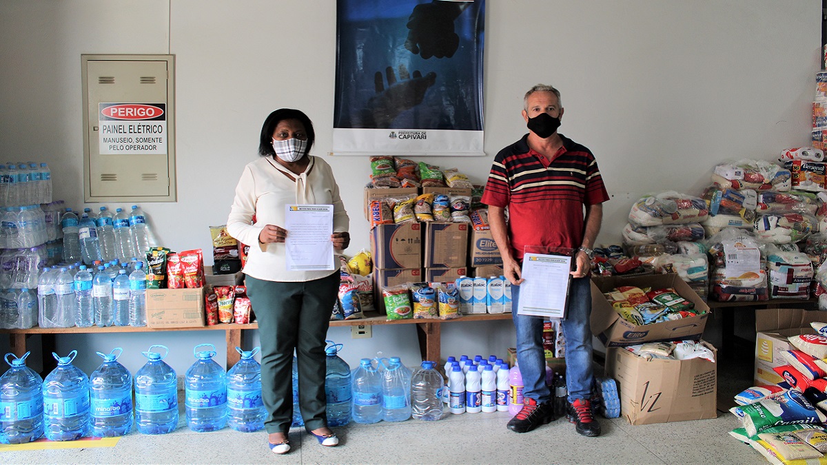 Na sexta-feira passada, 18, a vereadora Inês Luísa Félix da Costa (PSL) e o secretário municipal de Desenvolvimento Social, Ramon Bisin, receberam as cestas básicas enviadas pelo Governo Federal, por intermédio da solicitação feita pela deputada estadual Valéria Bolsonaro (PRTB).