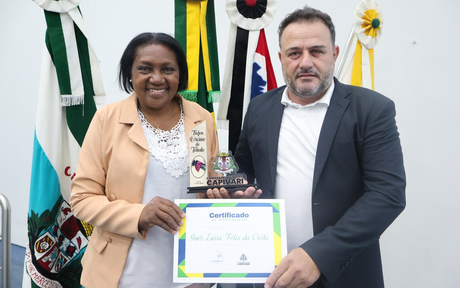 Em uma noite marcada por emoção, reconhecimento e celebração da luta por igualdade e justiça social, a Câmara Municipal de Capivari concedeu o Troféu Orcine de Toledo à vereadora Inês Luísa Félix (PL). A homenagem, que não era realizada desde 2019, foi retomada pelo presidente da Câmara, Rafael Massouh (PL), e reuniu autoridades, familiares, amigos e membros da comunidade local.