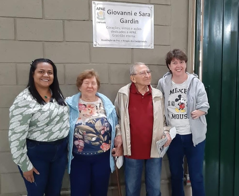 A quadra poliesportiva recebeu o nome de “Giovanni e Sara Gardin” e o parquinho foi batizado de “Bebeto e Inêz Annichino”, casais fundadores da Apae.