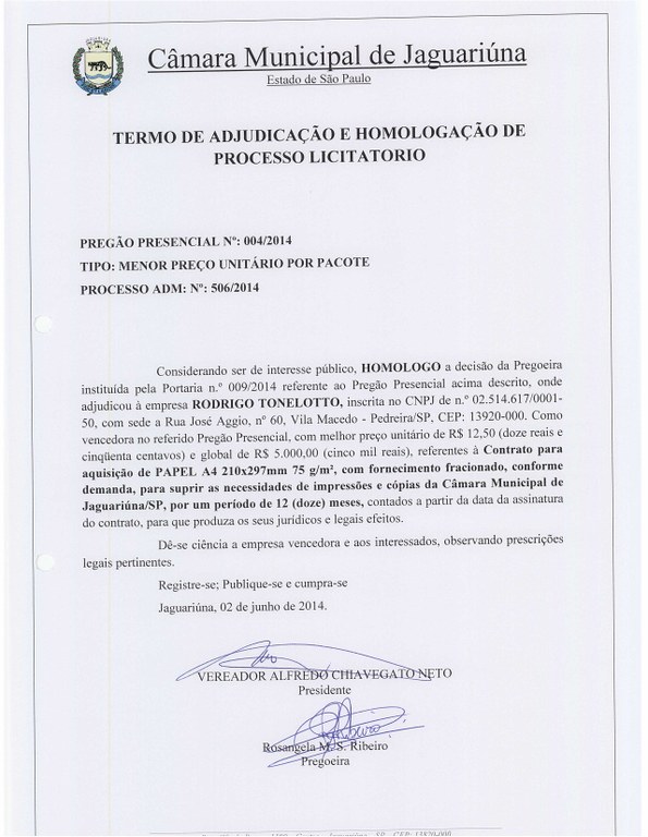 Pregão Presencial nº 004/2014