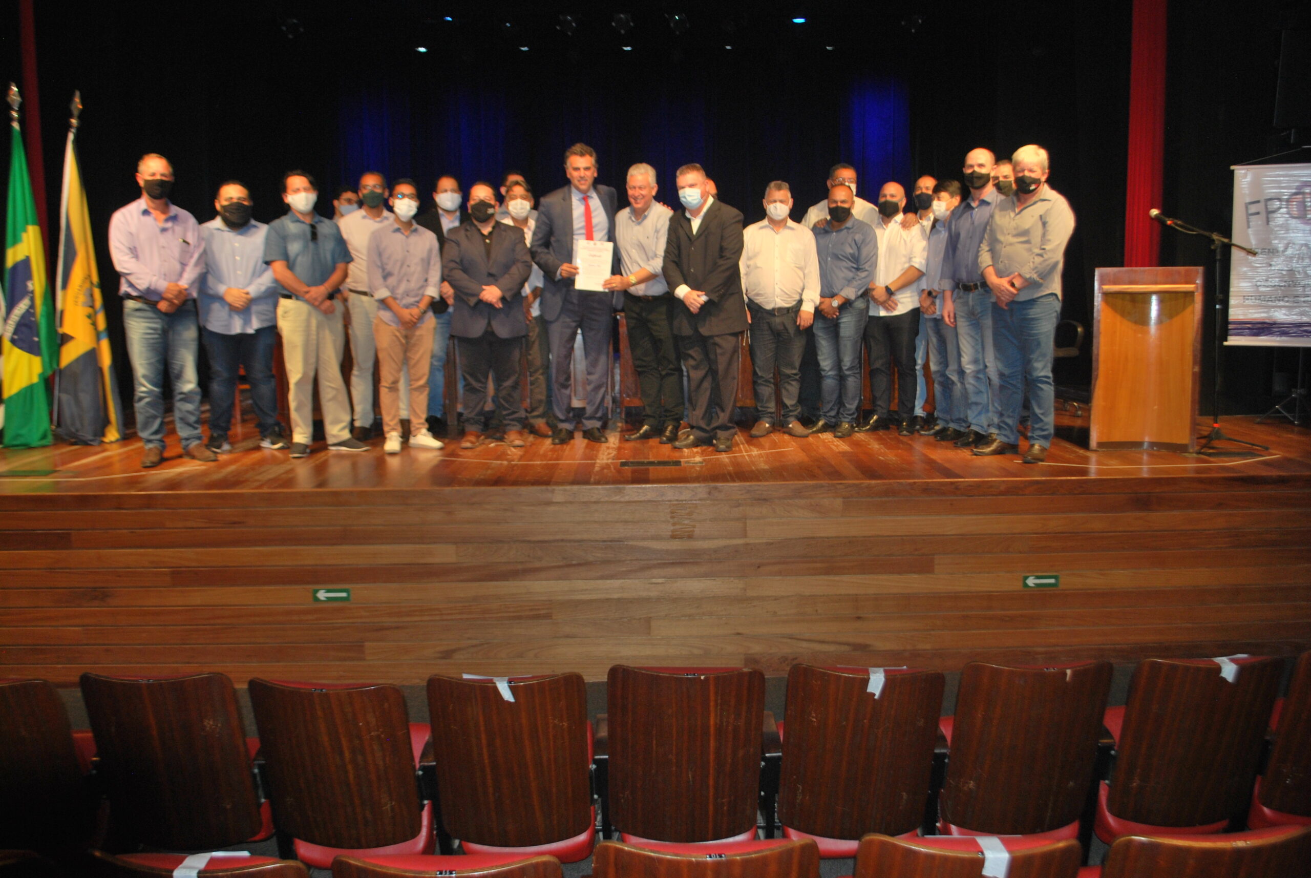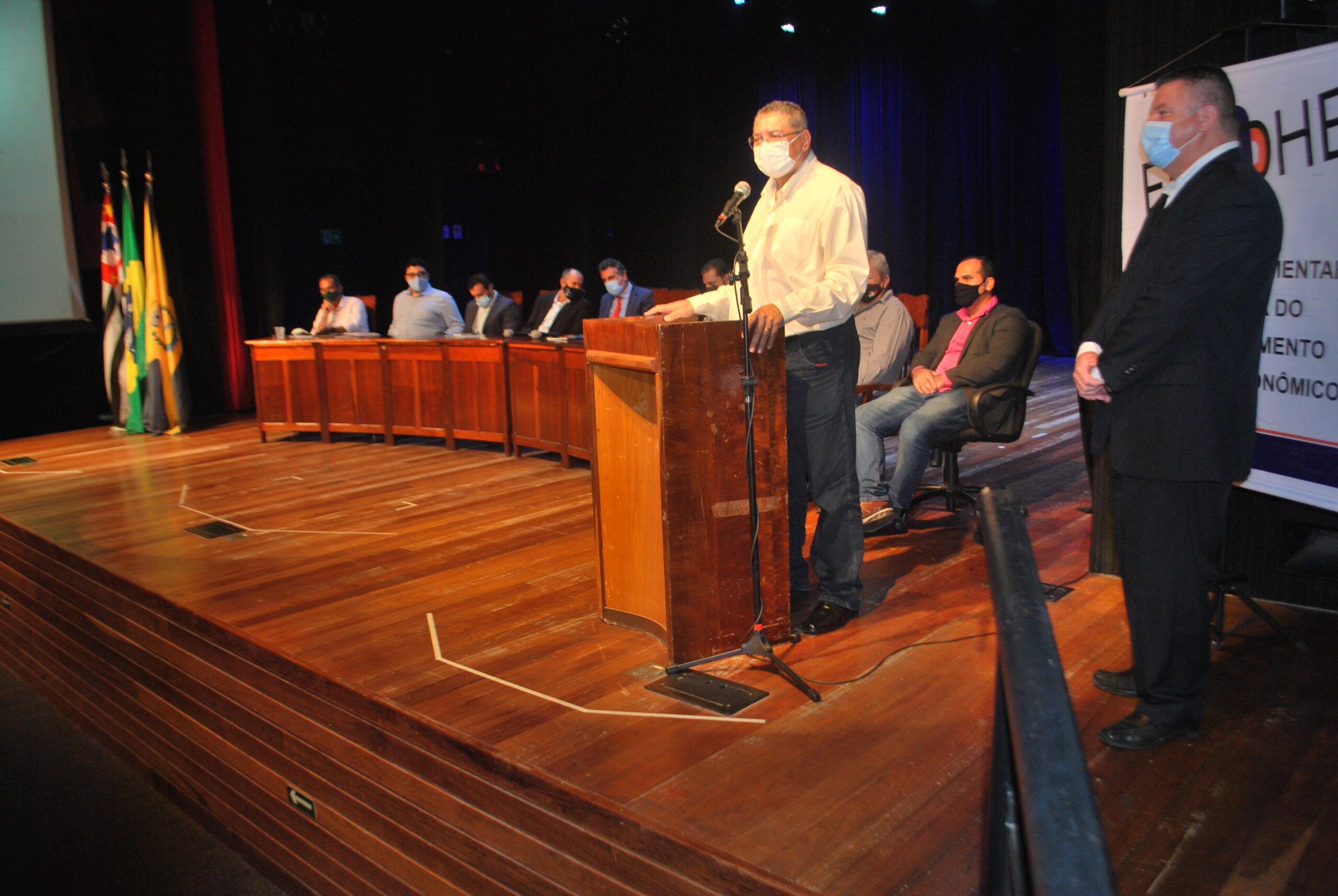 Vereadores da Câmara Municipal de Jaguariúna participaram, nesta quinta-feira (21), do 5º Encontro da Frente Parlamentar em Defesa do Desenvolvimento Humano e Econômico do Estado de São Paulo. O evento aconteceu no Teatro Municipal Dona Zenaide, em Jaguariúna. Participaram Afonso Lopes da Silva, o Silva, presidente da Câmara, Romilson Nascimento Silva, idealizador do encontro, José Muniz e Erivelton Marcos Proêncio, o Ton Proêncio. O prefeito Gustavo Reis abriu os trabalhos.