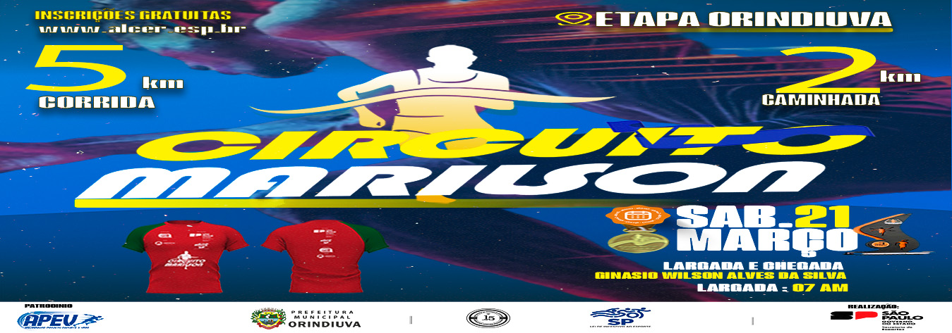 O Governo Municipal de Orindiúva, por meio do Departamento Municipal de Esporte, convida toda a população para participar da Etapa Orindiúva – Circuito Marilson 🏅 📅 Sábado, 21 de março 📍 Largada e chegada: Ginásio Wilson Alves da Silva ⏰ Início às 7h 🏃‍♂️ 5km corrida 🚶‍♀️…