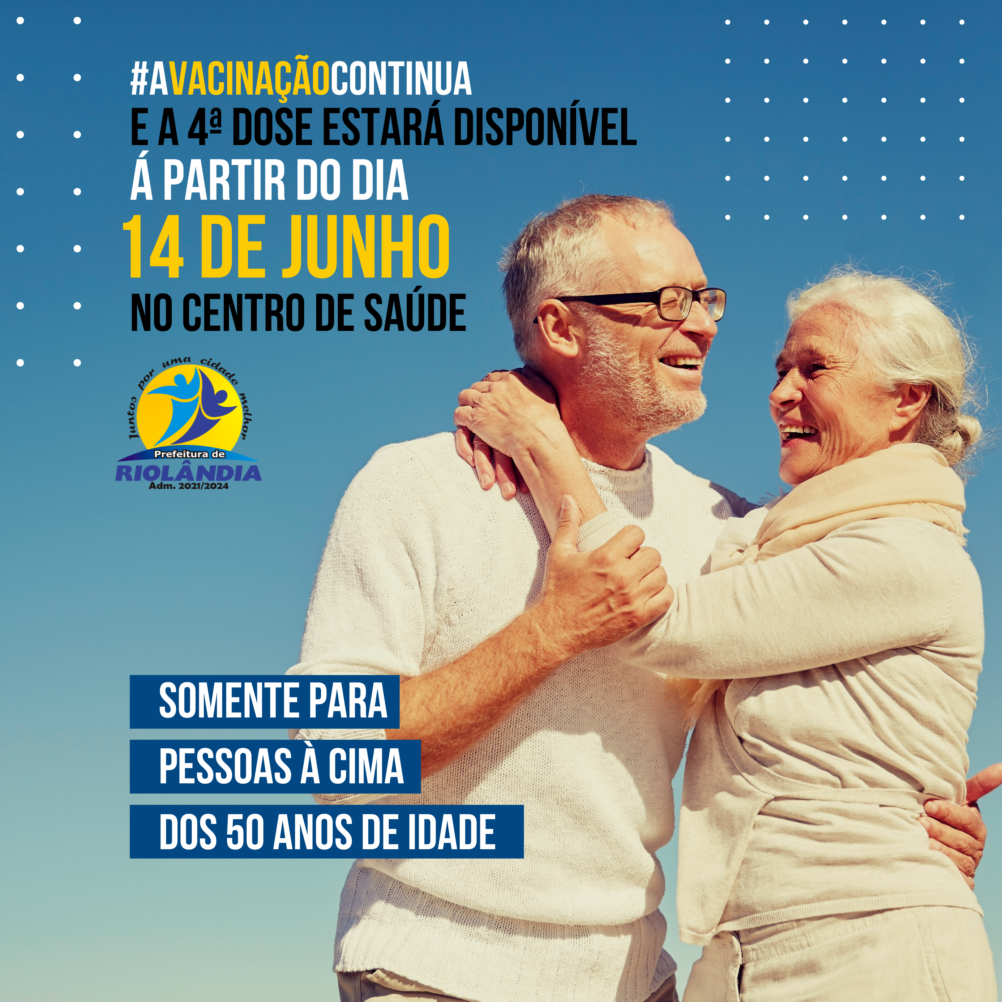 A 4ª dose estará disponível a partir do dia 14 de JUNHO no CENTRO DE SAÚDE somente para pessoas à cima dos 50 anos de idade.Documentos necessários: RG, CPF e as carteirinhas de vacinação da 1ª, 2ª e 3ª dose.