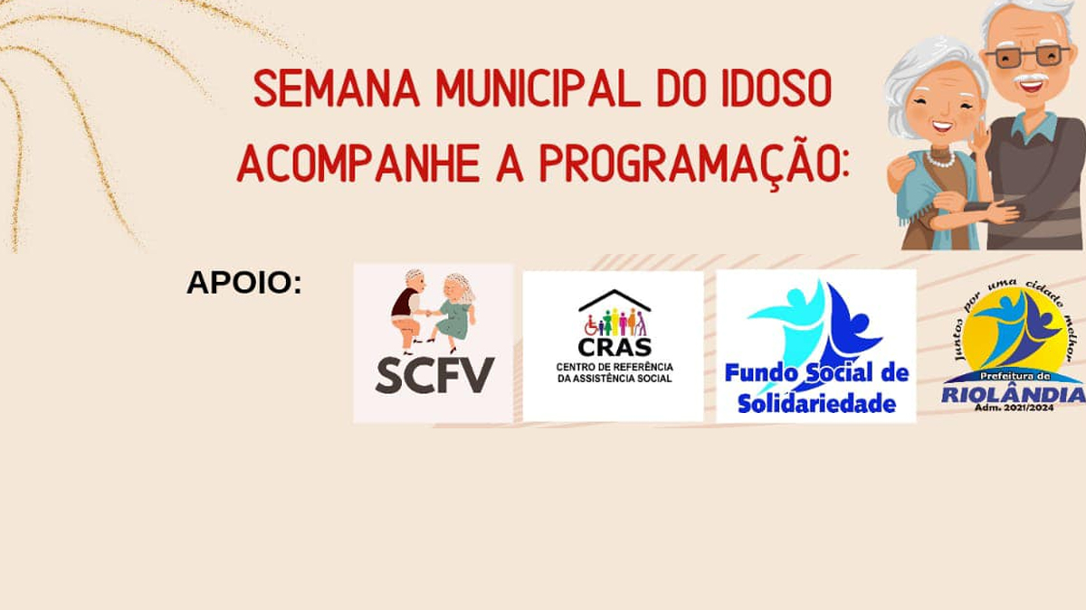 O Centro de Convivência do Idoso, junto com a Prefeitura Municipal e parceiros, quer reunir quem tem mais de 60 anos para festejar a “SEMANA MUNICIPAL DO IDOSO” .