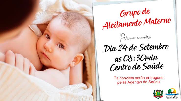 O próximo encontro do Grupo de Aleitamento Materno será dia 24 de Setembro, as 08:30min no Centro de Saúde 🤰🤱