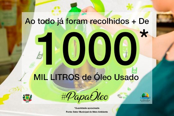 Graças ao Projeto Papa Óleo, o Setor Municipal do Meio Ambiente 🌳 já recolheu aproximadamente + de MIL LITROS de óleo usado. Os mesmos são reaproveitados na produção de resina para tintas, são, detergente, ração para animais e até Biodiesel. 😱😱