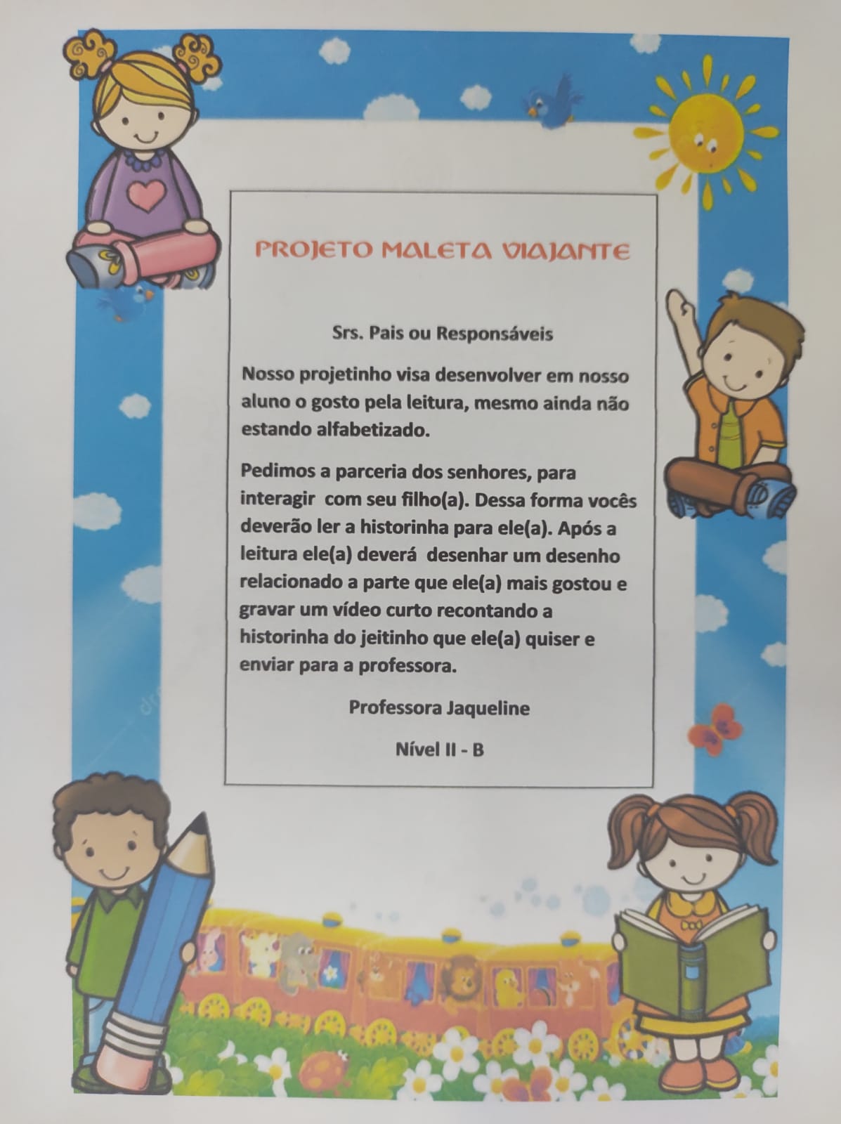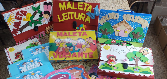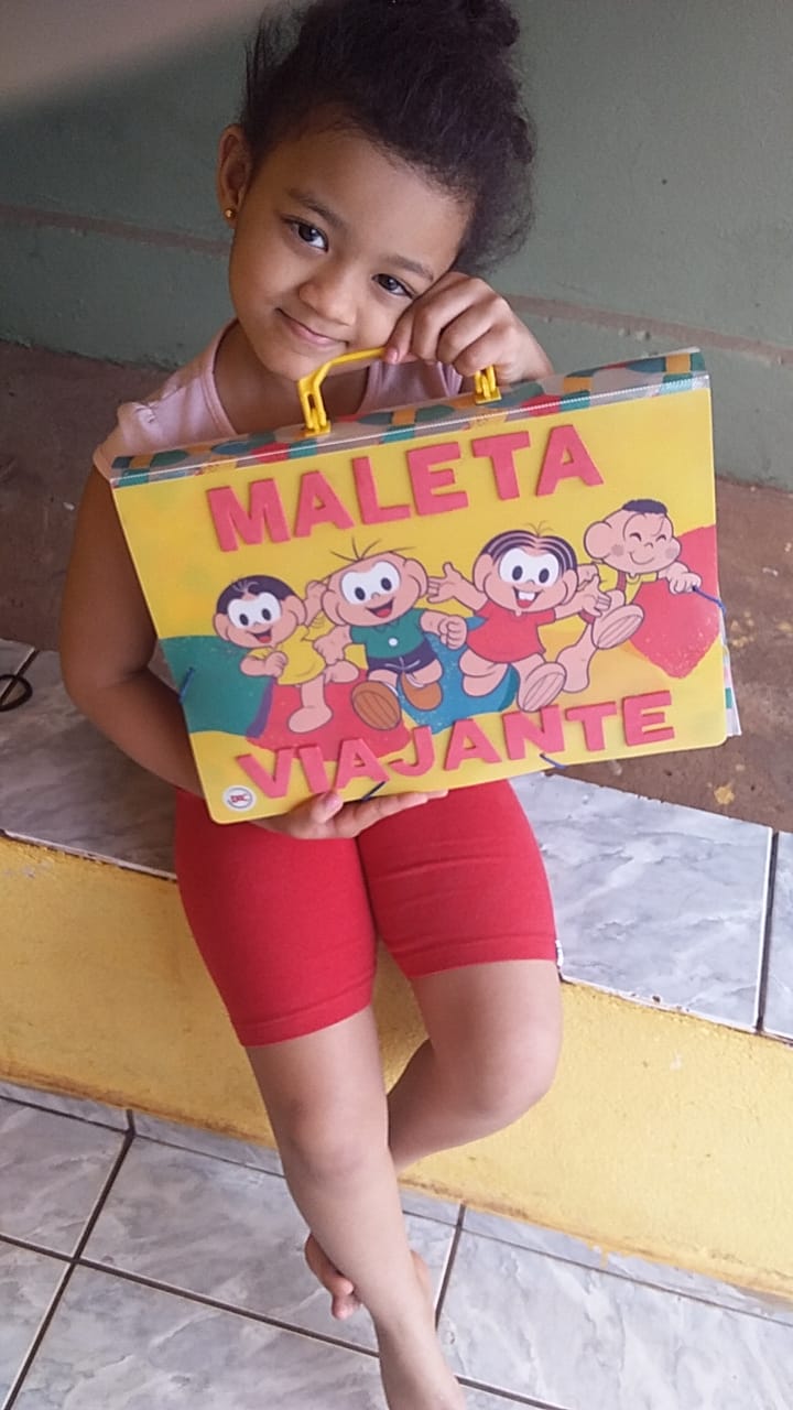 No Projeto Maleta viajante a família lê para a criança os clássicos da literatura infantil, e as crianças fazem a devolutiva através de vídeos e desenhos a parte que mais gostou da história.