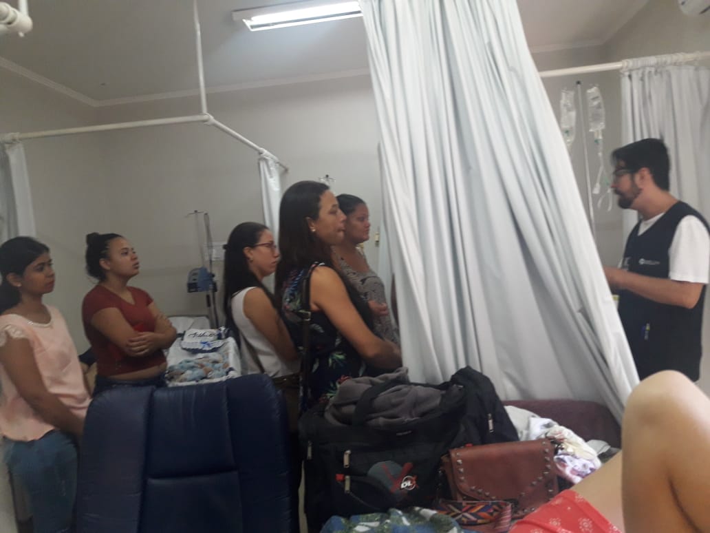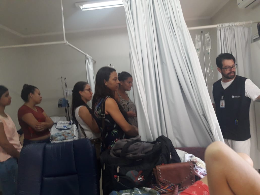 Em consonância com os trabalhos desenvolvidos nos grupos de gestante que são acompanhadas pela ESF (Estratégia de saúde da família) e CS (Centro de Saúde), aconteceu no dia 18 de maio uma visita dessas gestantes na santa casa de Votuporanga na ala da maternidade. Na oportunidade as gestantes puderam conhecer as instalações que acolherão no momento do nascimento de seus bebes, bem como participaram de uma palestra com o enfermeiro obstetra que abordou sobre amamentação. Durante a palestra o enfermeiro detalhou a importância do principal alimento nos primeiros seis meses de vida da criança. As gestantes foram acompanhadas pela equipe NASF (núcleo de apoio a saúde da família) composta por Assistente Social Caticilene, Psicóloga Flavia e Fonoaudióloga Lorena. “Quando a gestante conhece o ambiente onde será realizado o parto, ela fica mais tranqüila e pode ainda tirar todas as duvidas, o que torna o parto mais humanizado e conseqüentemente fortalece o vinculo entre mãe e bebe. [gallery link="file" size="full" ids="6680,6681,6682,6683,6684,6685,6686,6687,6688,6689,6690,6691,6692,6693,6694,6695,6696,6697,6698,6699,6700,6701,6702,6703,6704,6705,6706,6707,6708,6709,6710,6711"]